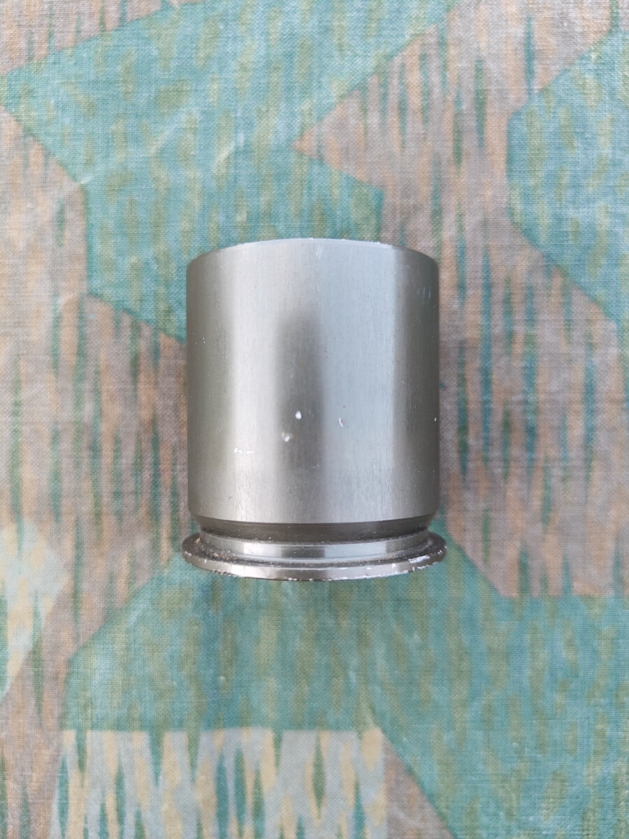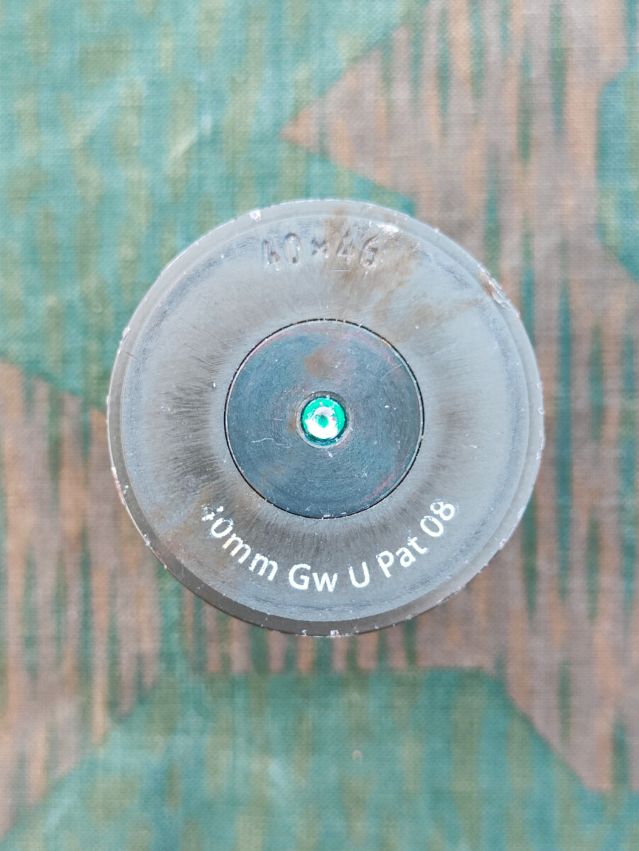Eine Hülse für die Übungspatrone für den SIG 40 mm Granatwerfer. Die Hülse ist leer und ungefährlich.
