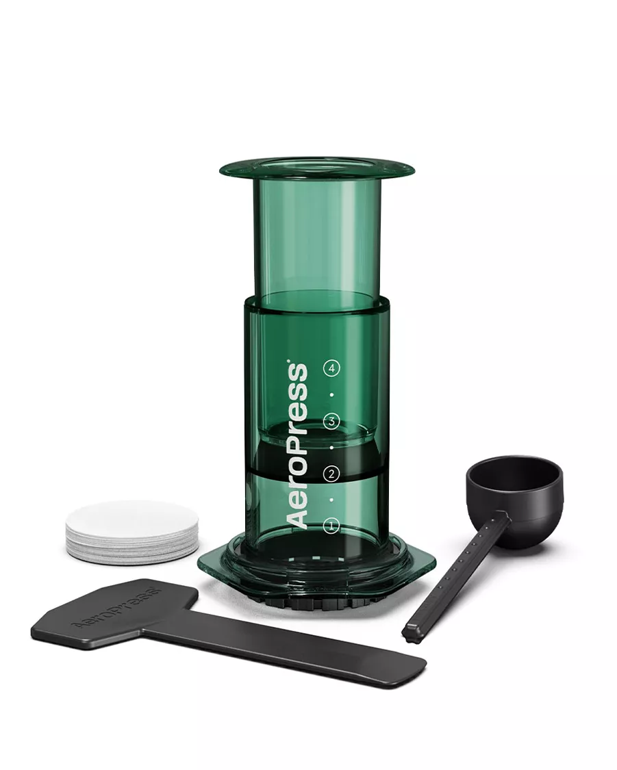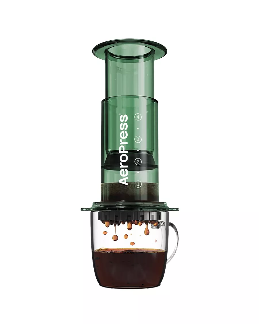 Das AeroPress® Kaffee- und Espressozubereiter Set clear grün, ist eine manuelle Kaffeemaschine für die Zubereitung der perfekten Tasse Kaffee für dich.