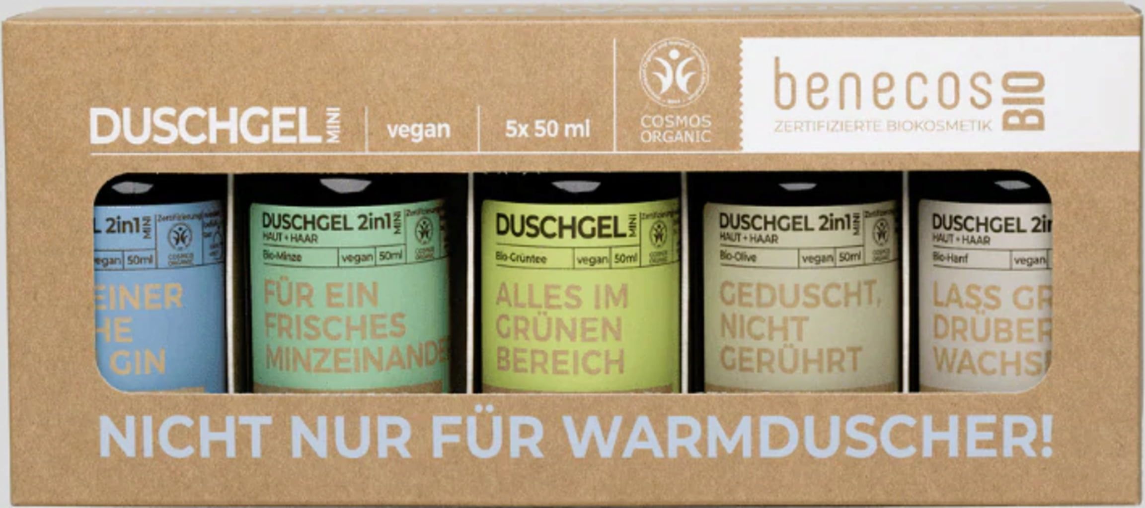 Benecos hat das perfekte Weihnachtsgeschenk für alle die gerne duschen – egal ob nun warm oder kalt. Mit dieser schönen Auswahl aus einem Duschgel und vier 2in1 Duschgels lässt es sich so richtig gemütlich duschen. Die tollen Rezepturen mit Bio-Apfelsaft und sanften pflanzlichen Tensiden reinigen Haut sowie Haare und hinterlassen einen angenehmen Duft.