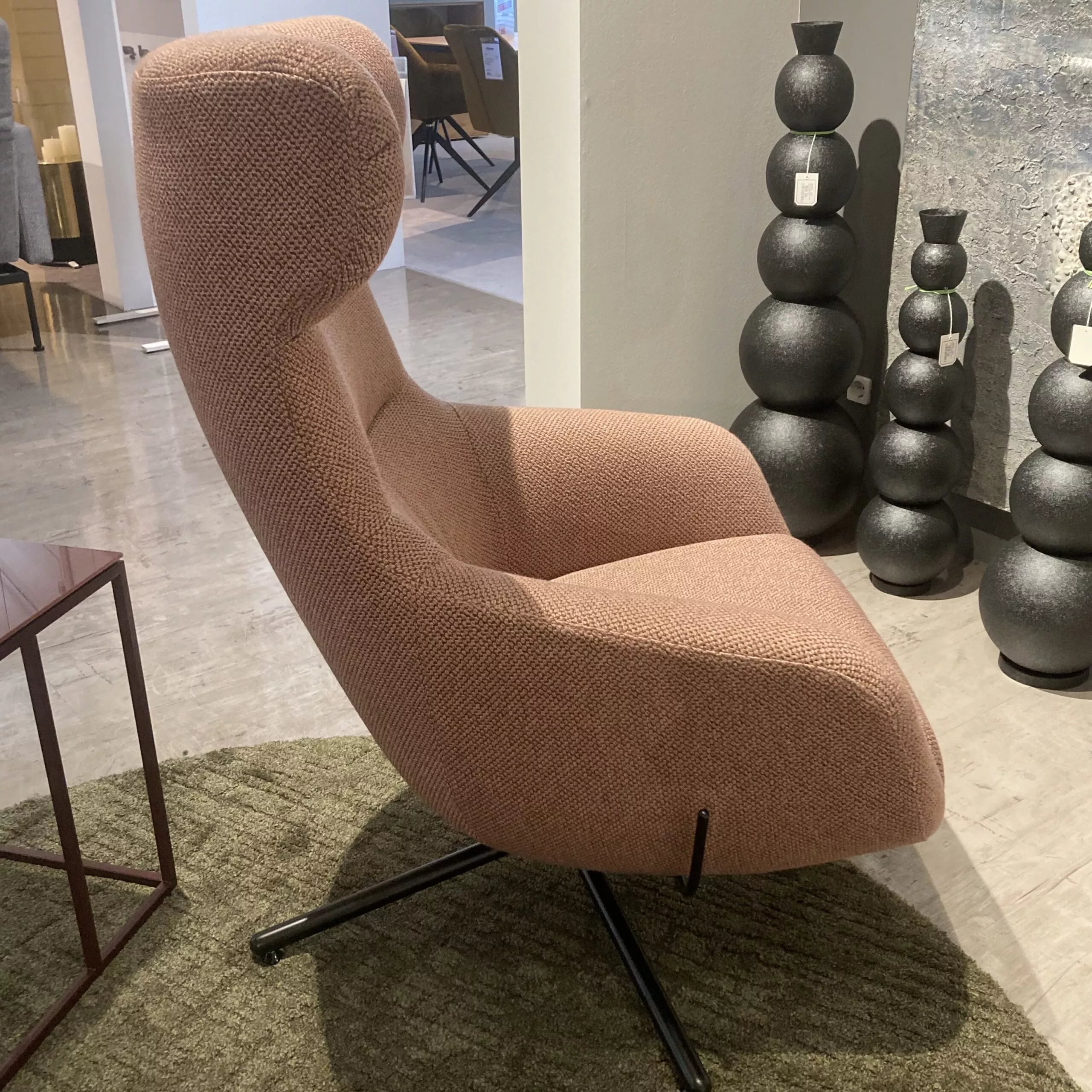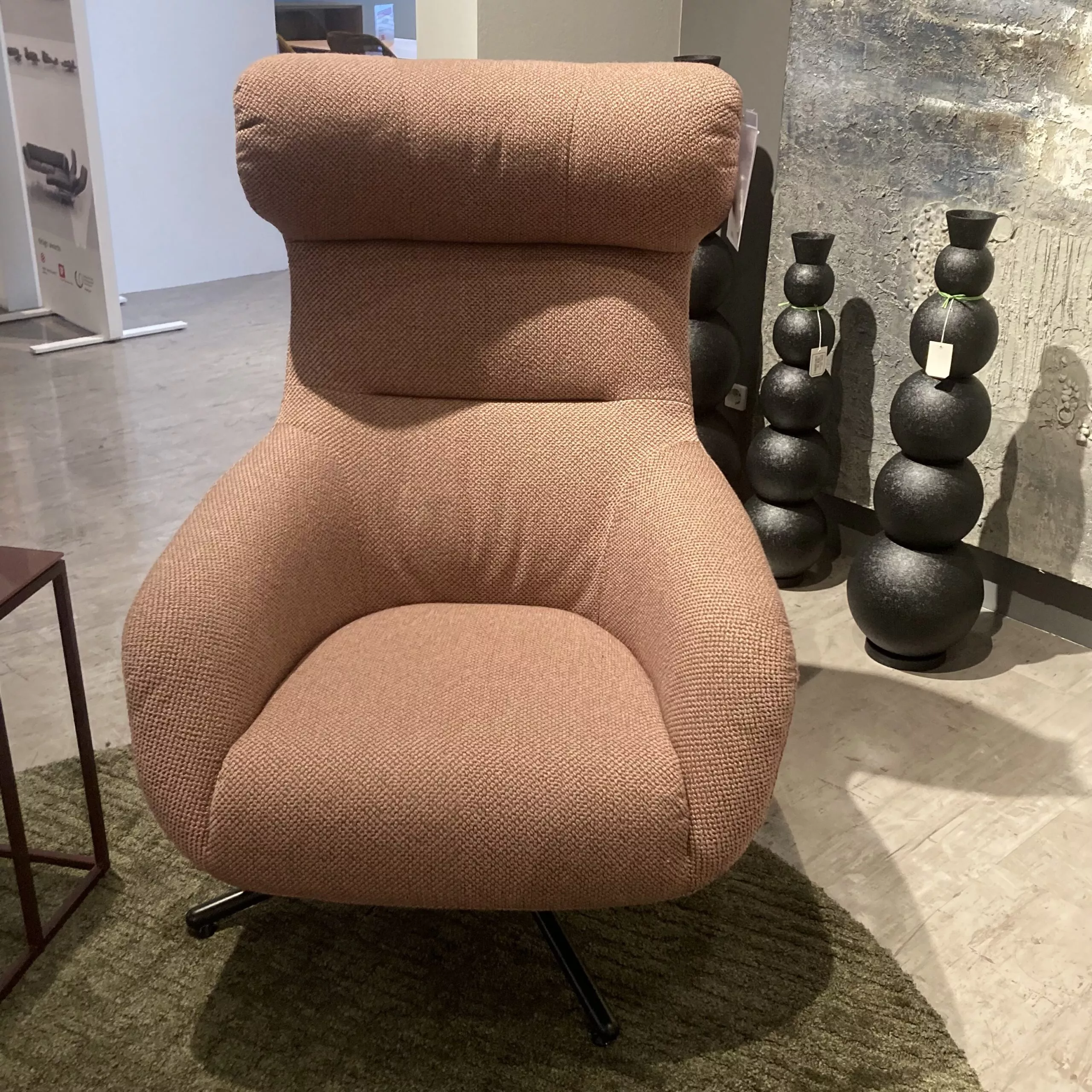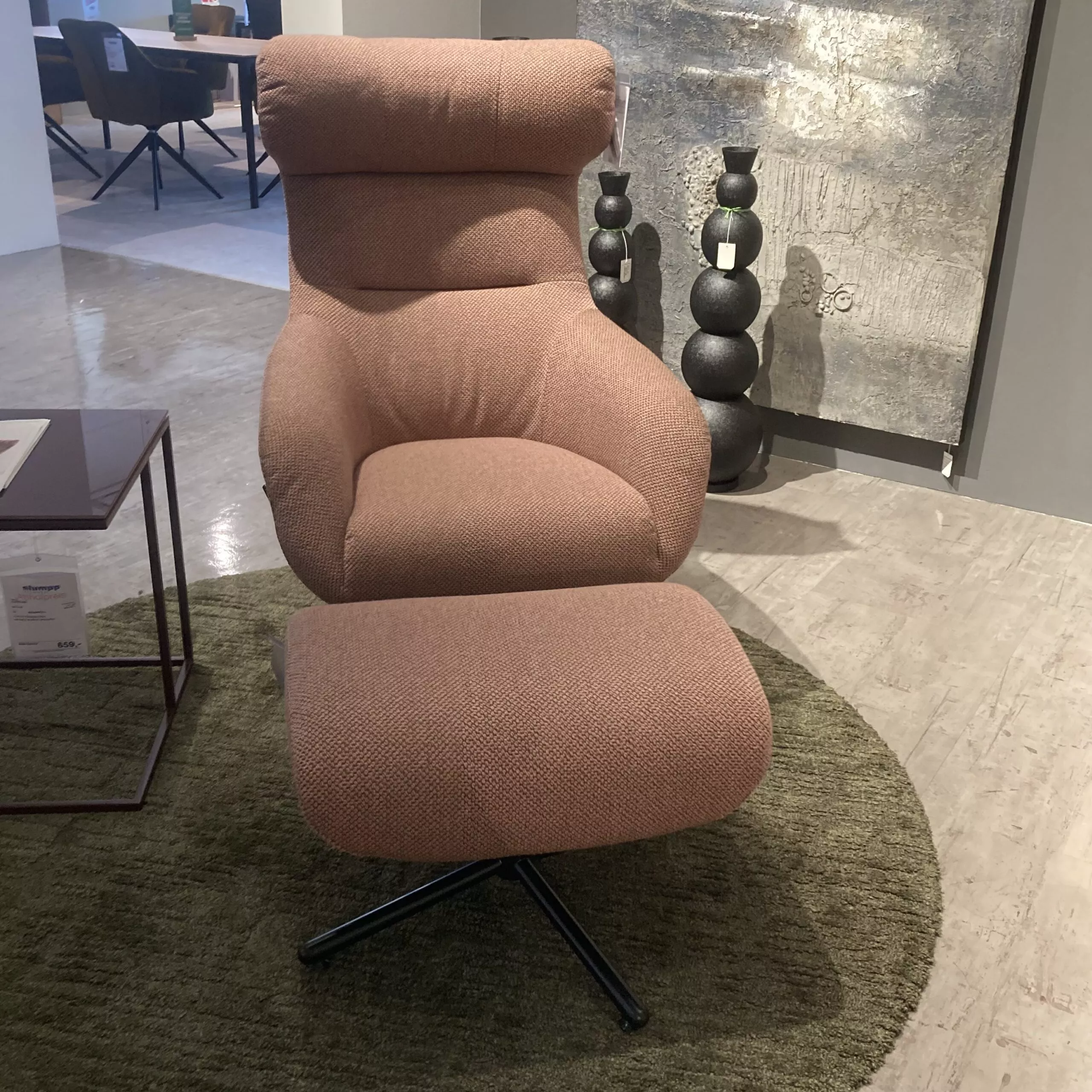 Bequemer Sessel mit Hocker von Brühl mit einem Bezug aus Stoff in Rose, beide Artikel mit Drehfunktion.