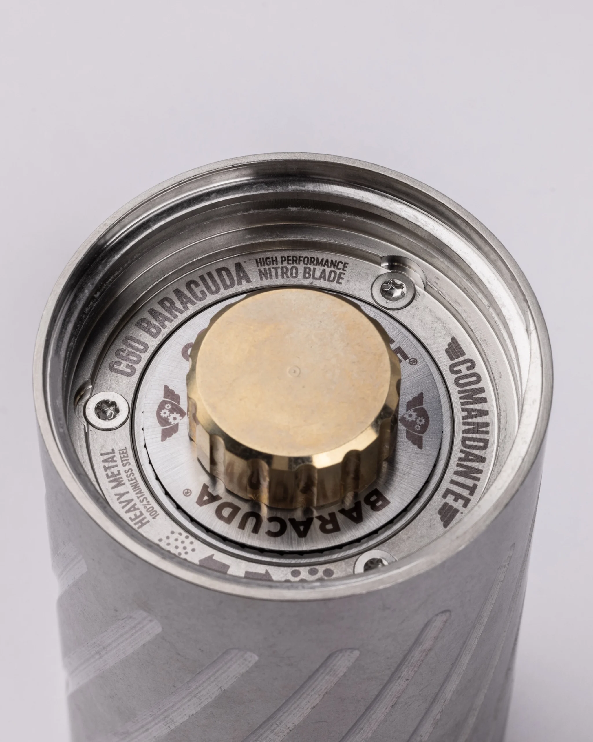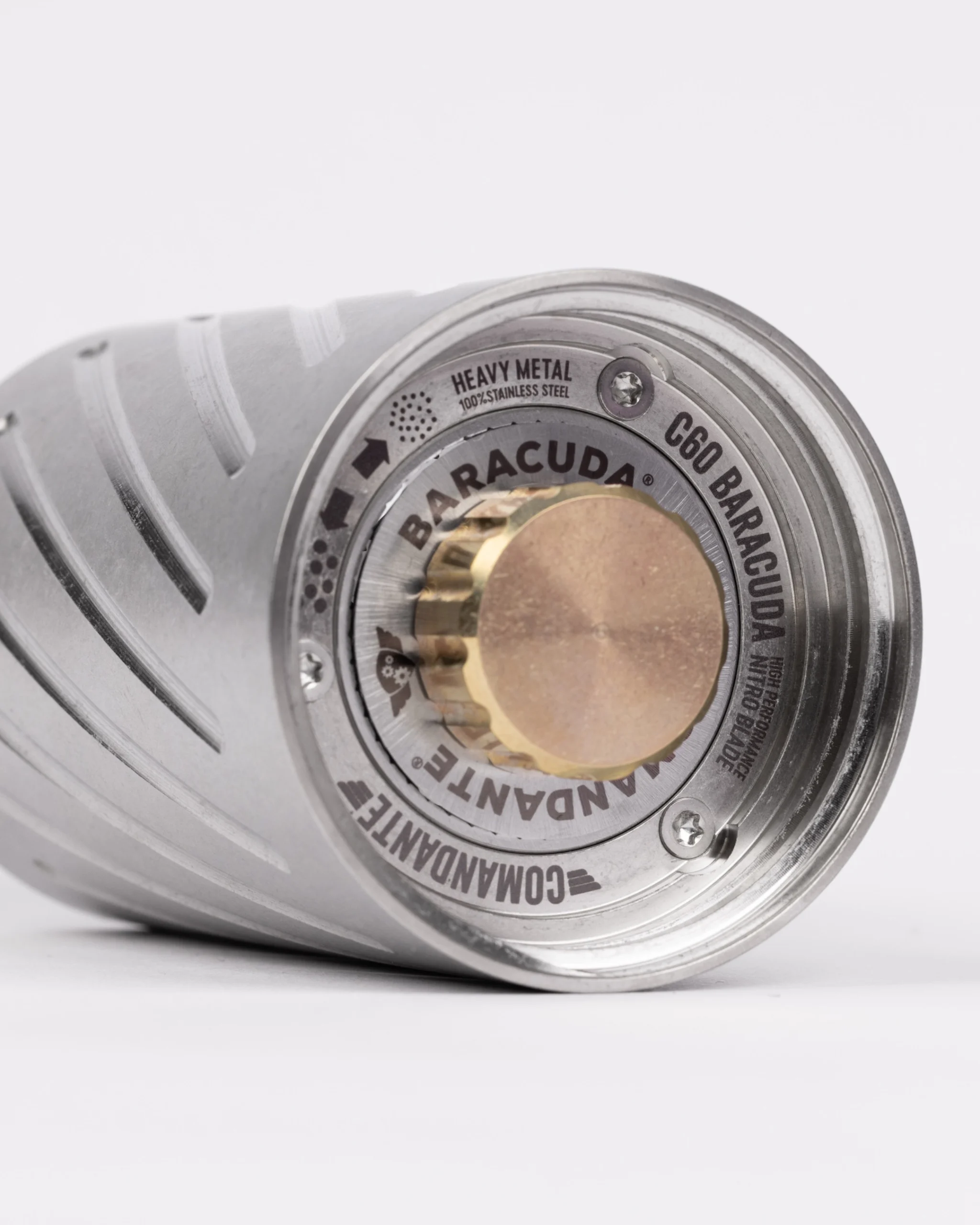 Die mächtige Baracuda erforderte einen komplett neuen Mühlenkörper. Die “Unibody”-Konstruktion, gefertigt aus einem massiven Stahlblock, garantiert maximale Stabilität und Antriebseffizienz. Comandante hat sich nicht mit herkömmlichen Fertigungsmethoden zufriedengegeben, sondern auf Verfahren zurückgegriffen, die sonst nur im Hochleistungsmotorenbau zum Einsatz kommen. Das Ergebnis ist ein Design, das Kraft und Eleganz vereint – eine Mühle, die mit einem Kilogramm Gewicht in der Hand liegt und pure Freude bereitet.