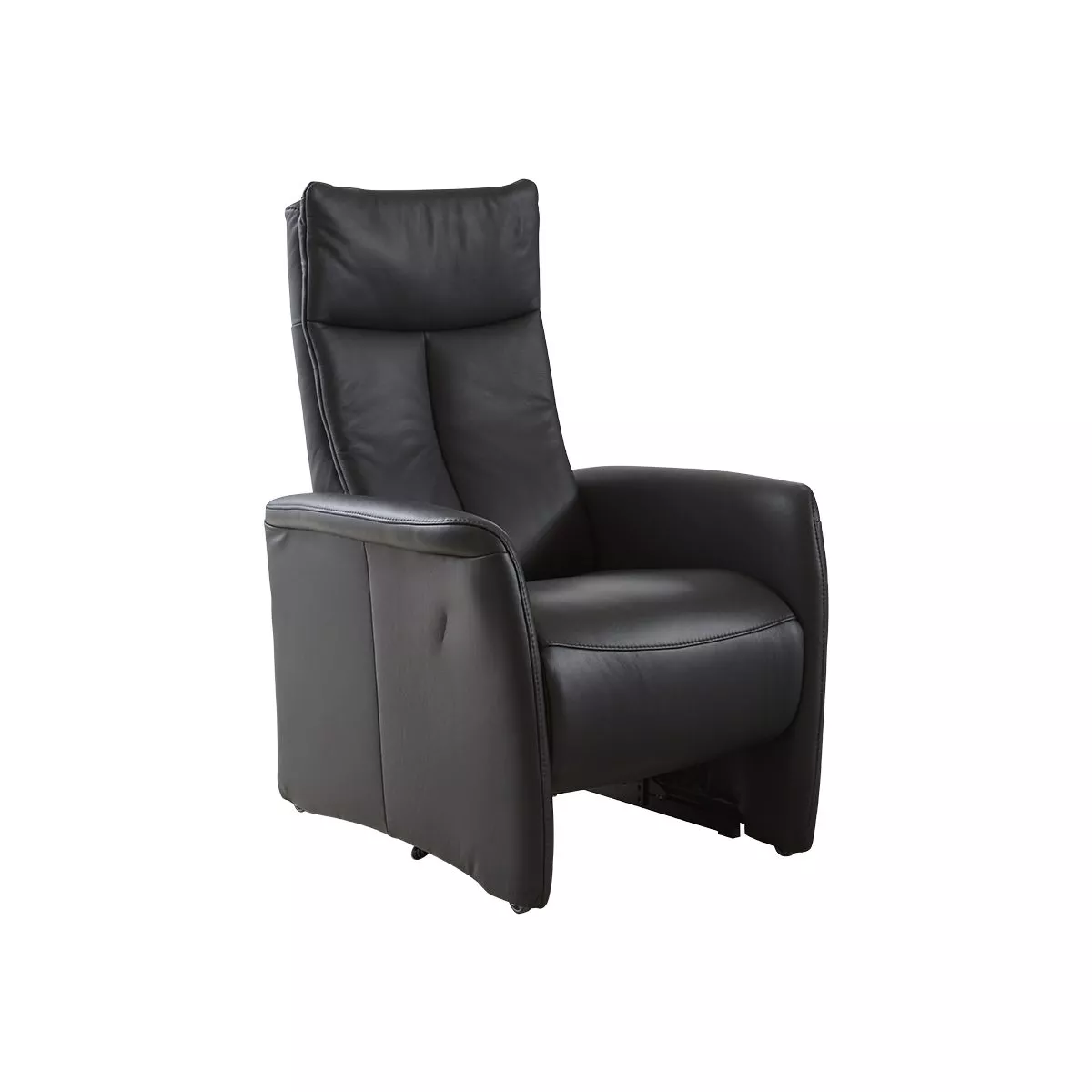 Die durchgängigen Armlehnen verlaufen bis zum Boden und überzeugen durch das geradlinige Design. Der Relaxsessel ist komplett aus Echtleder in Anthrazit überzogen und erscheint dadurch besonders apart.