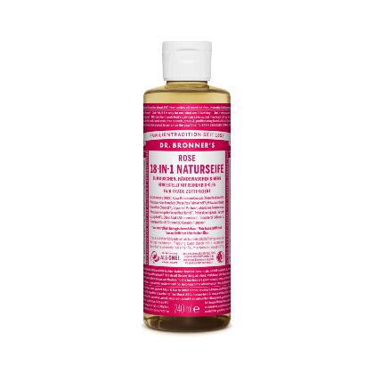 Dr. Bronner’s Flüssigseife Rose – für alle die es zart blumig mögen.