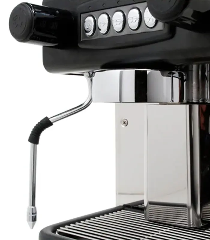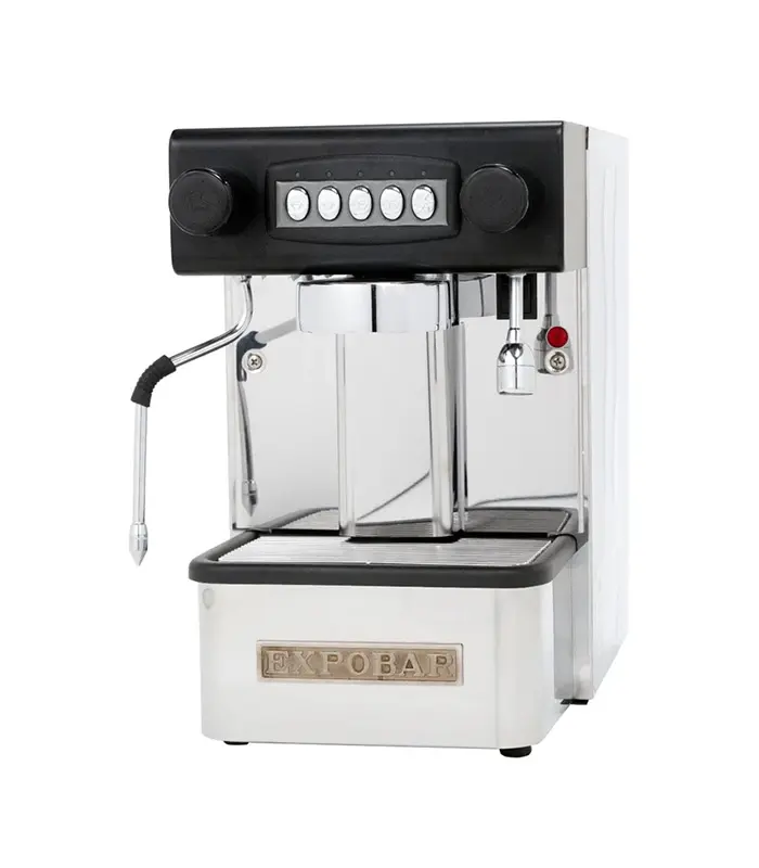 Die Expobar Office ist eine automatische Espressomaschine mit vier programmierbaren Tasten und einer manuellen Taste. Der Aspekt der Programmierbarkeit ist ein absolutes Novum, vor allem im Hinblick auf den Preis. Sie ermöglicht es jedem Benutzer, unabhängig von seinem Kenntnisstand, mit einem einzigen Knopfdruck einen bestimmten Espresso zuzubereiten. Wie die Pulser verfügt auch die Control über eine um 360° drehbare Dampf- und Heißwasserdüse, einen handelsüblichen verchromten Messing-Filterträger und den neuen Gruppenkopf E61. Ein herkömmlicher E61 saugt heißes Wasser durch den Aufgusskreislauf, um sicherzustellen, dass das Aufgusswasser stets seine Temperatur beibehält. Die Expobar ergänzt dies durch eine konkave Pre-Infusionskammer, die den Kaffeesatz vor dem Aufguss einweicht und die Extraktion unterstützt. Das Gleiche gilt für das Innere des Geräts mit Sicherheitsschaltern, elektronischer Kesselsteuerung und Komponenten in kommerzieller Qualität. All dies zeigt, dass diese Maschine ebenso hochwertig wie zukunftsorientiert ist.