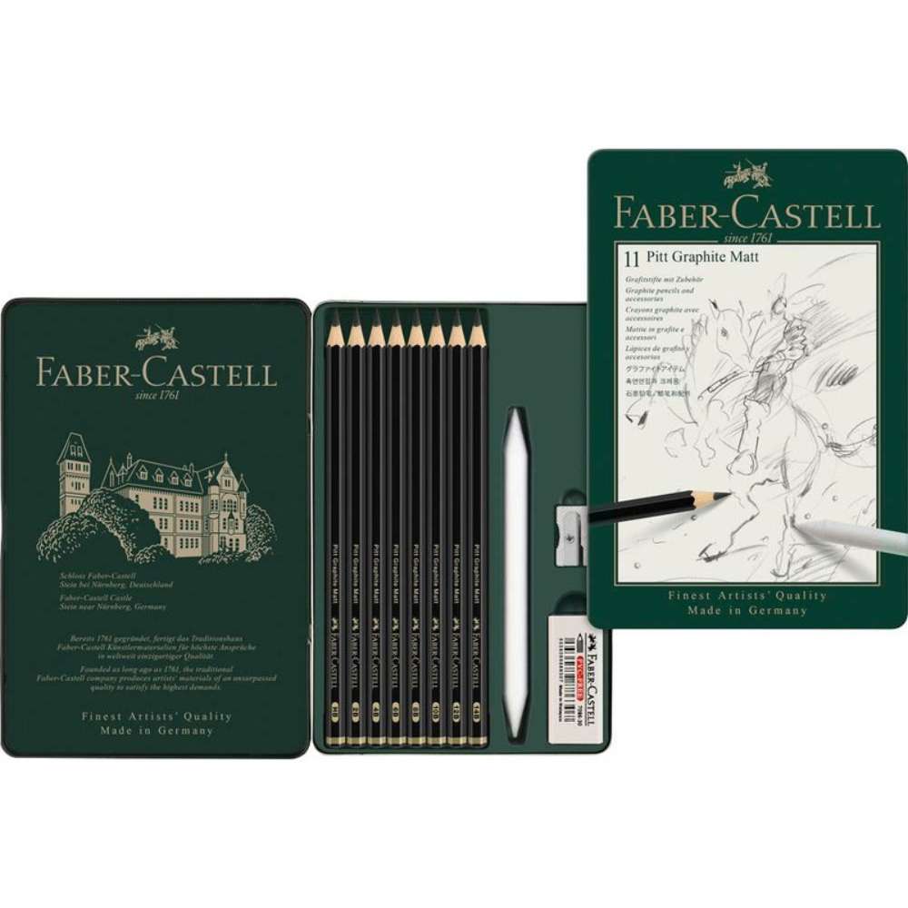 - Set: 8 Graphitstifte, Radiergummi, Spitzer, Estompe Papierwischer, Metall-Etui