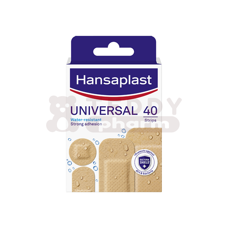Hansaplast Universal Pflaster eignen sich für alle Arten von kleineren Wunden bzw. Verletzungen. Pflaster besteht aus atmungsaktivem und wasserabweisendem Material. Die nicht verklebende Wundauflage schützt und polstert die Wunde und die extra starke Klebkraft sorgt dafür, dass das Pflaster nicht verrutscht.