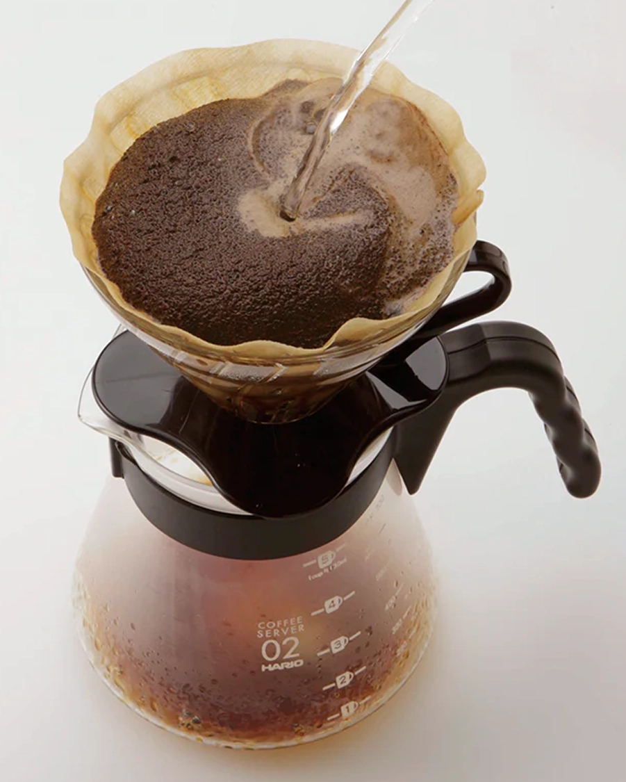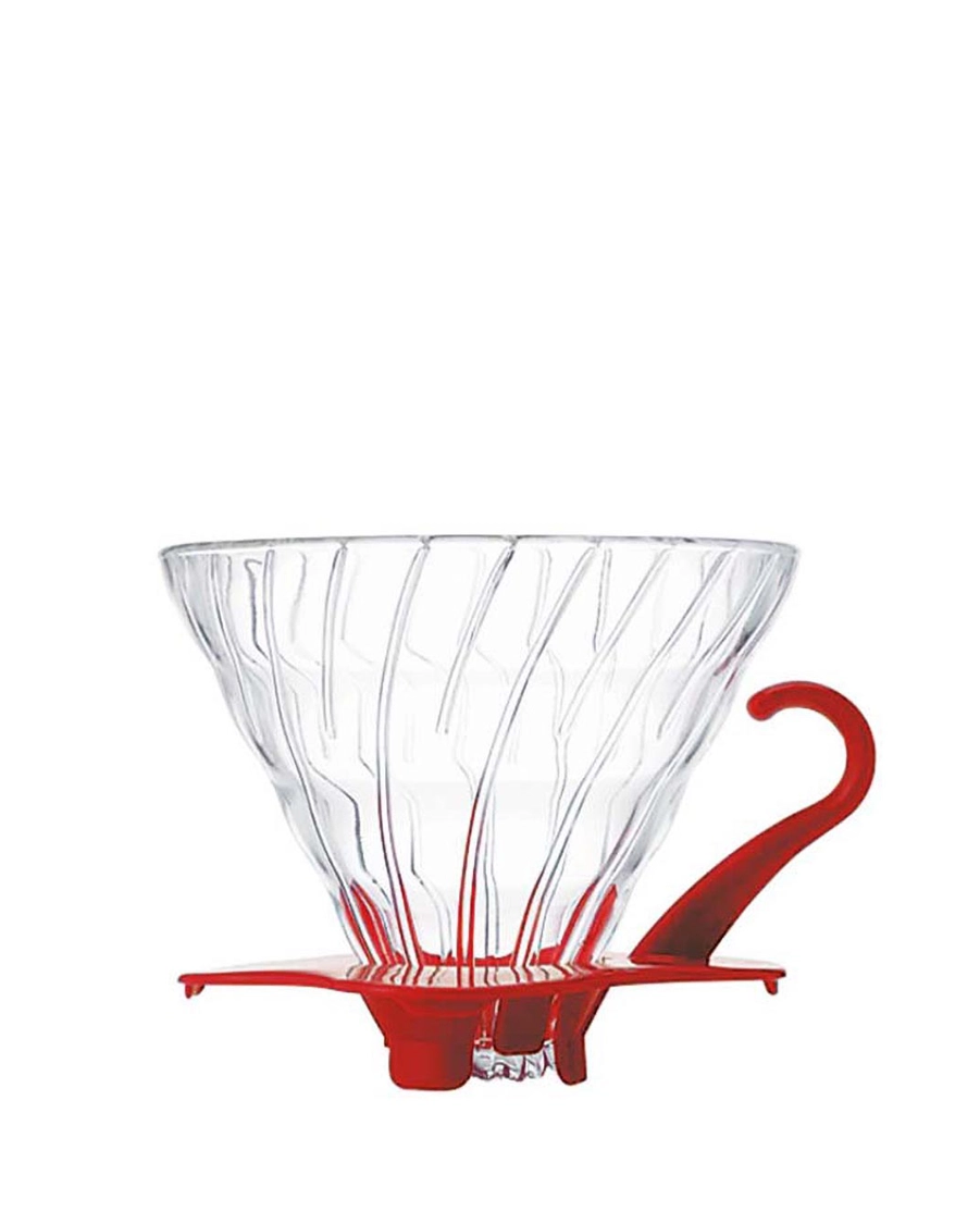Der Hario V60 Hand-Kaffeefilter 02 aus Glas in rot ist perfekt für die Zubereitung für 1-4 Tassen. Bis 600 ml, breite Öffnung und Spiralrippen an der Innenseite. Passende Papierfiltergröße 02