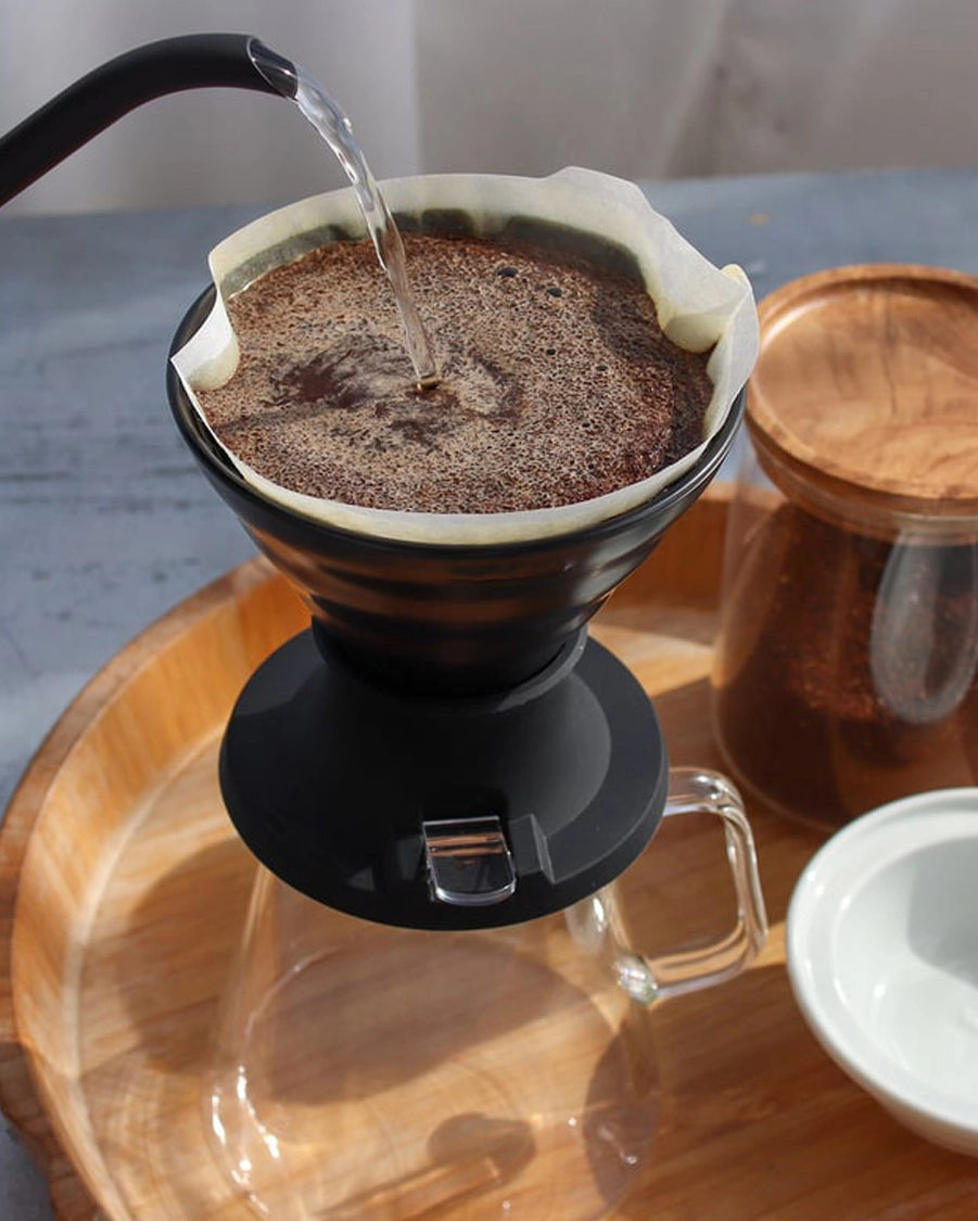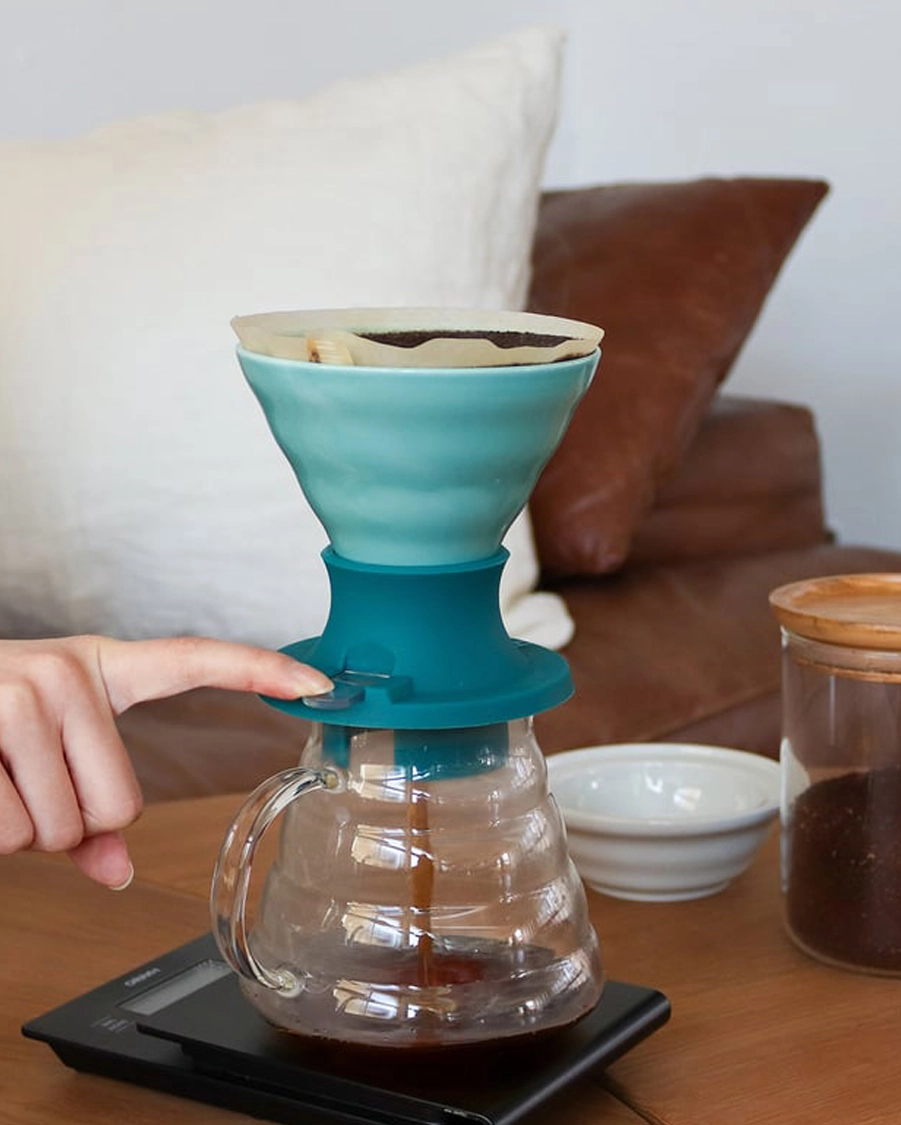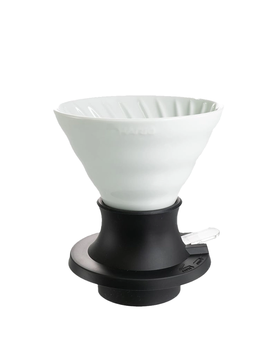 Der Hario V60 Hand-Kaffeefilter 02 Immersion Switch White vereint das Beste aus zwei Kaffeewelten: der Immersions- und der Pour-Over-Methode.