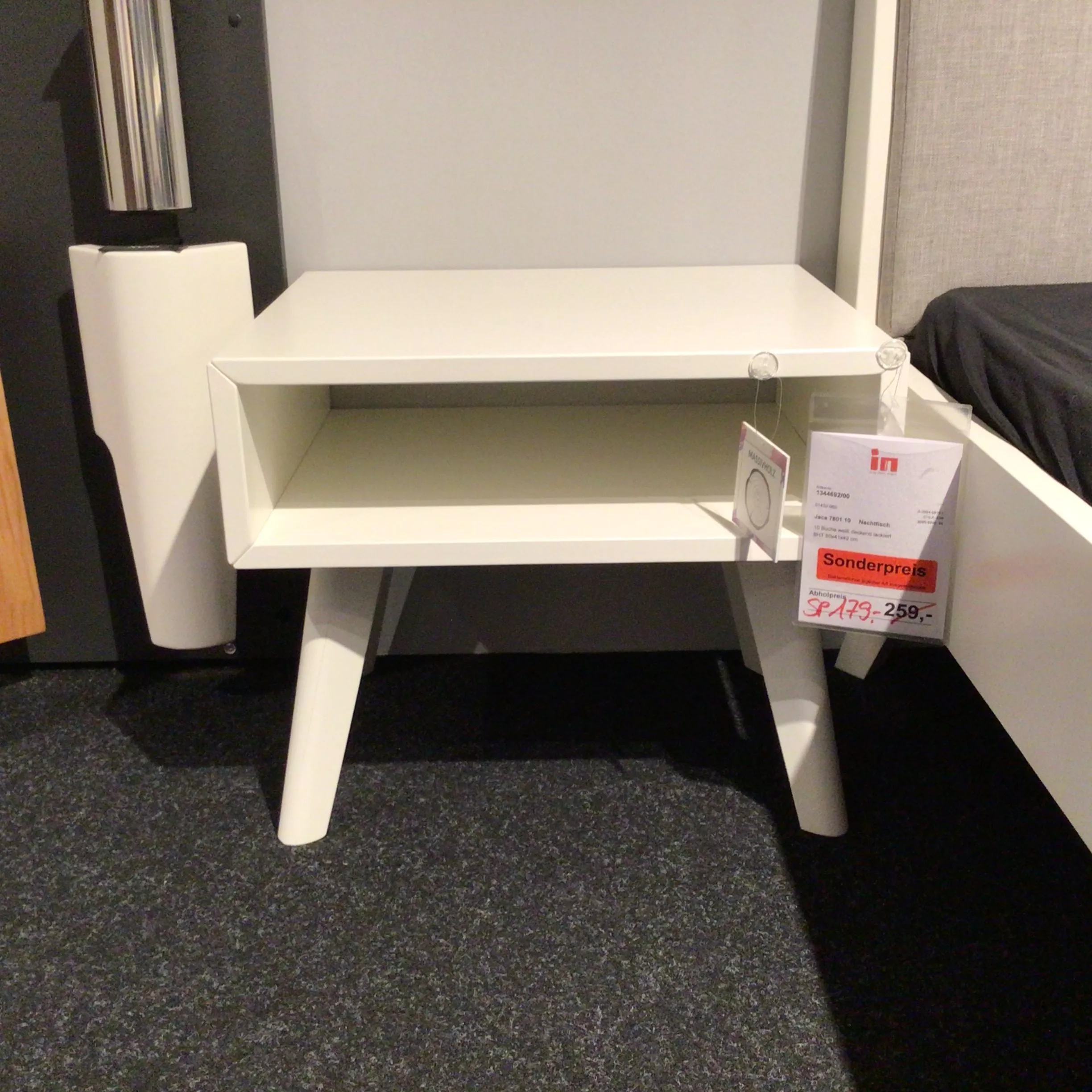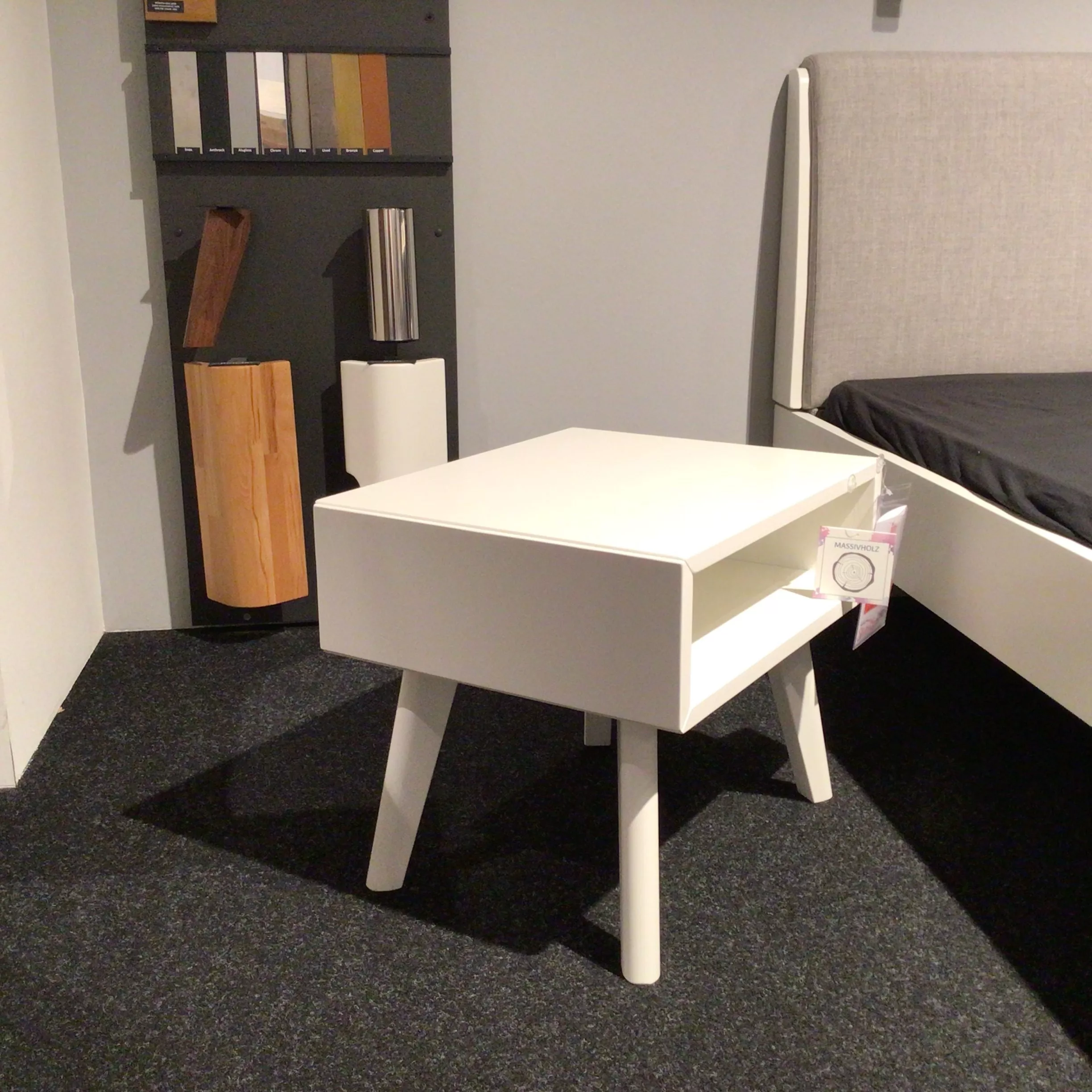 Nachttisch von Hasena aus Buche in weiß deckend lackiert mit einem offenem Fach.