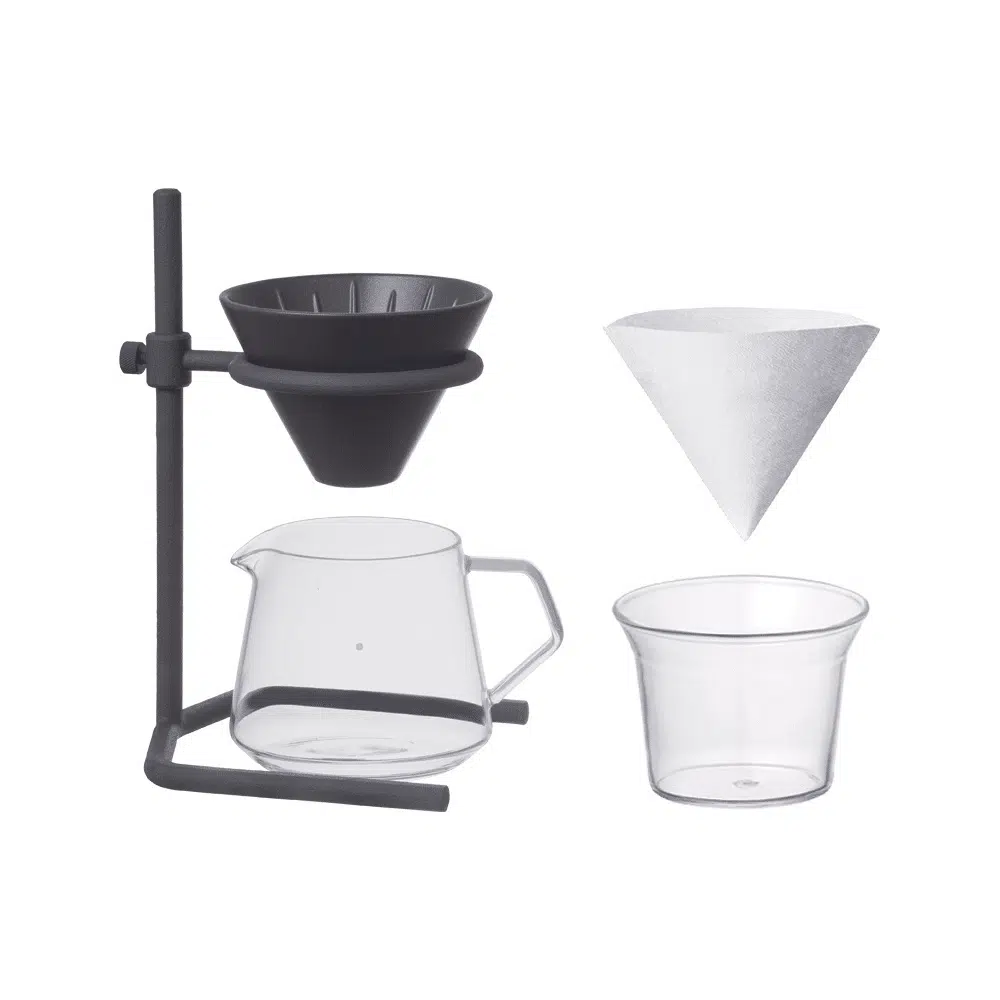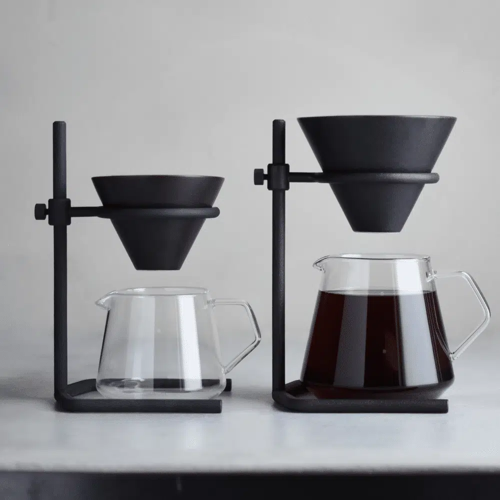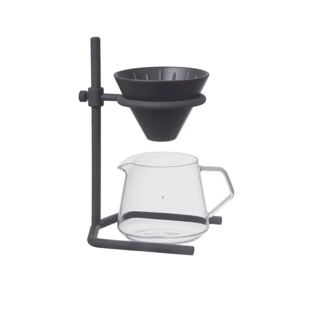Das Kinto SCS Kaffee-Zubereiter Set 2C in schwarz ist ein Komplett-Set aus der SCS-Serie (Slow Coffee Style). Das Set besteht aus einem gegossenen Ständer und einem Porzellan Dripper mit reichhaltiger strukturierter Glasur bzw. Finish. Der Dripständer kann in der Höhe verstellt werden, so dass Du in Deine eigene Tasse oder Kaffeekanne benutzen kannst. Die Innenseite des Dripständers ist sehr gut für den Dripper geeignet, so dass dieser stabil sitzt.