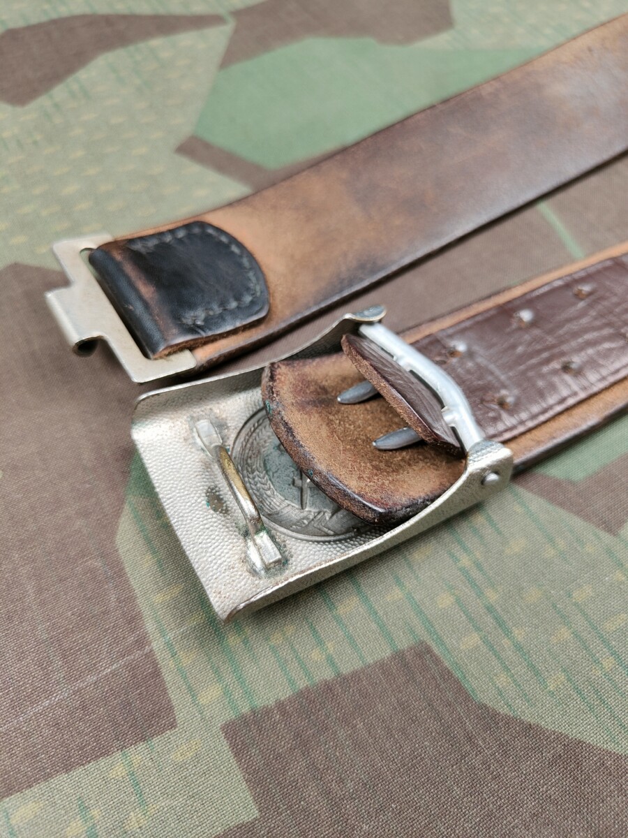 Das Koppelschloss trägt das Staatswappen der DDR und ist aus Weissmetall gefertigt.
