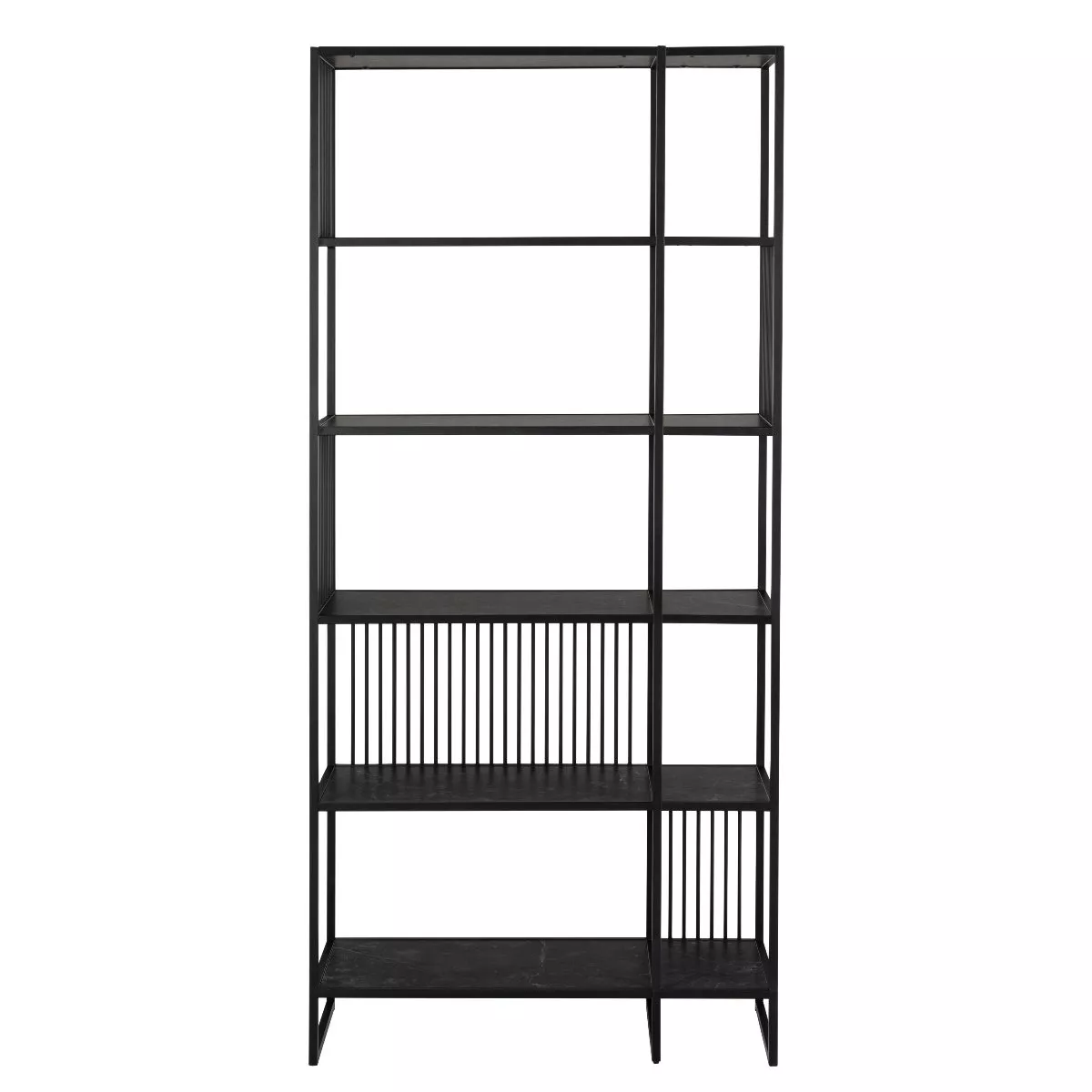 Die Böden mit Melaminbeschichtung in edlem Dekor Marmor schwarz verleihen dem Regal eine luxuriöse Note und sind gleichzeitig pflegeleicht. So bleibt die elegante Optik dauerhaft erhalten, ohne aufwendige Pflege.