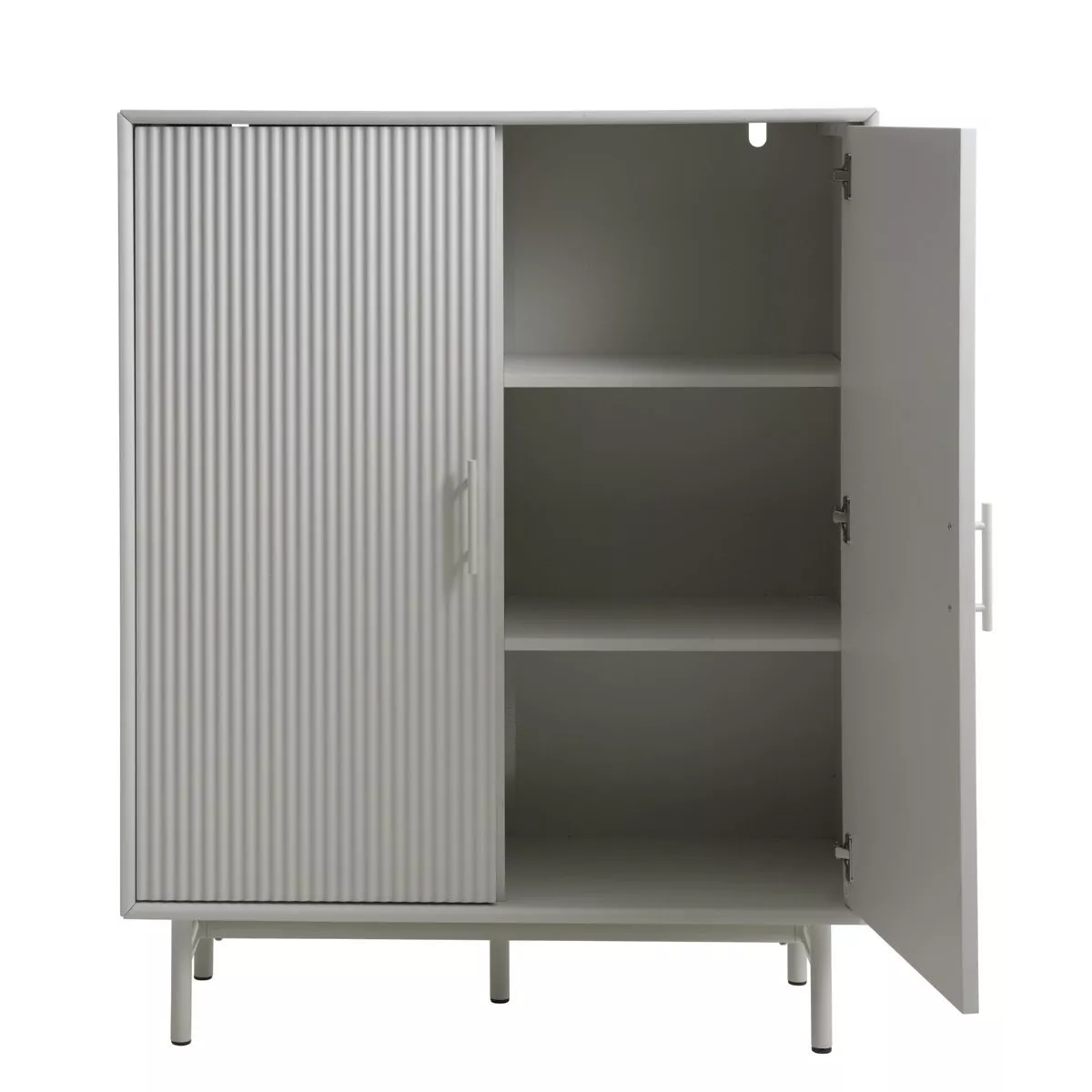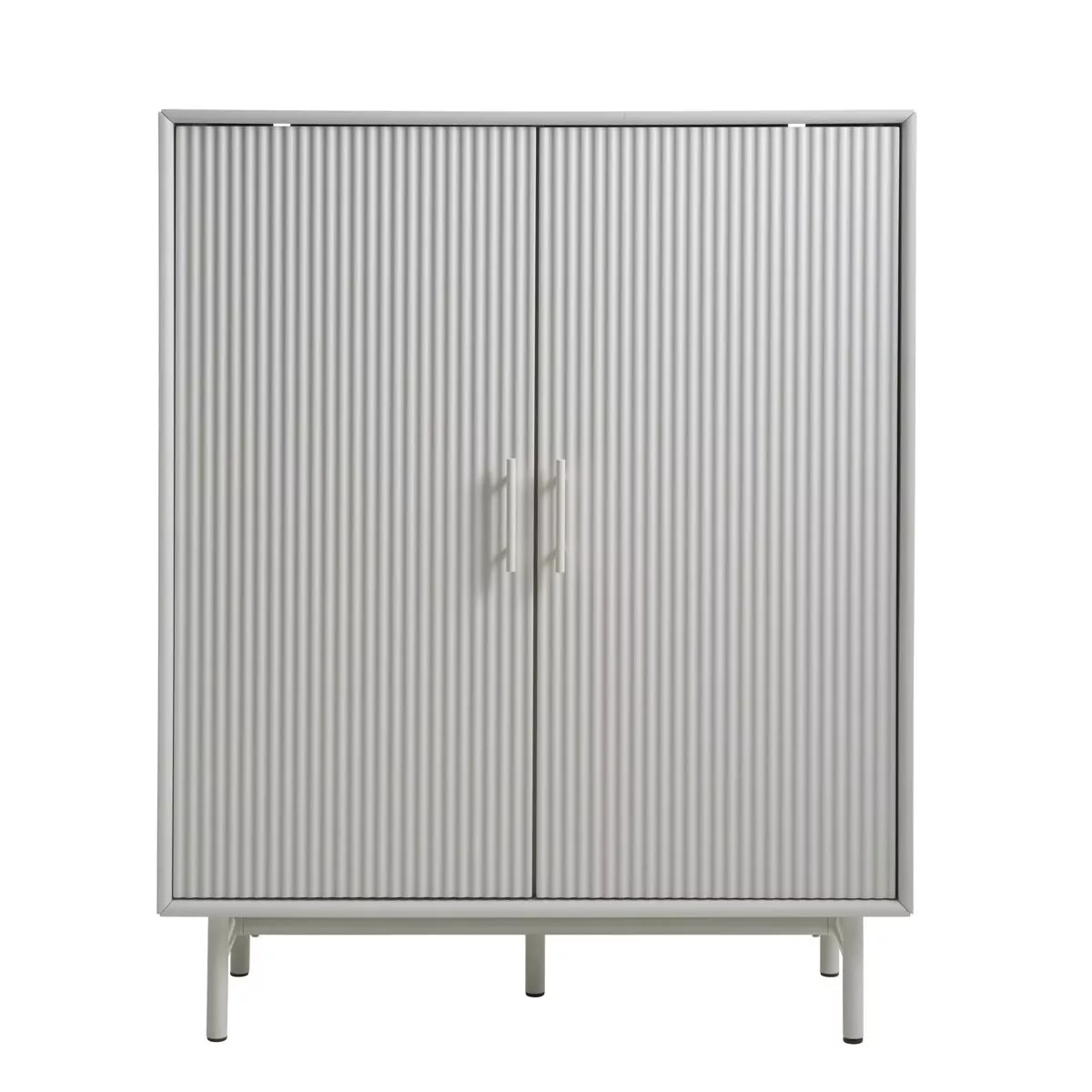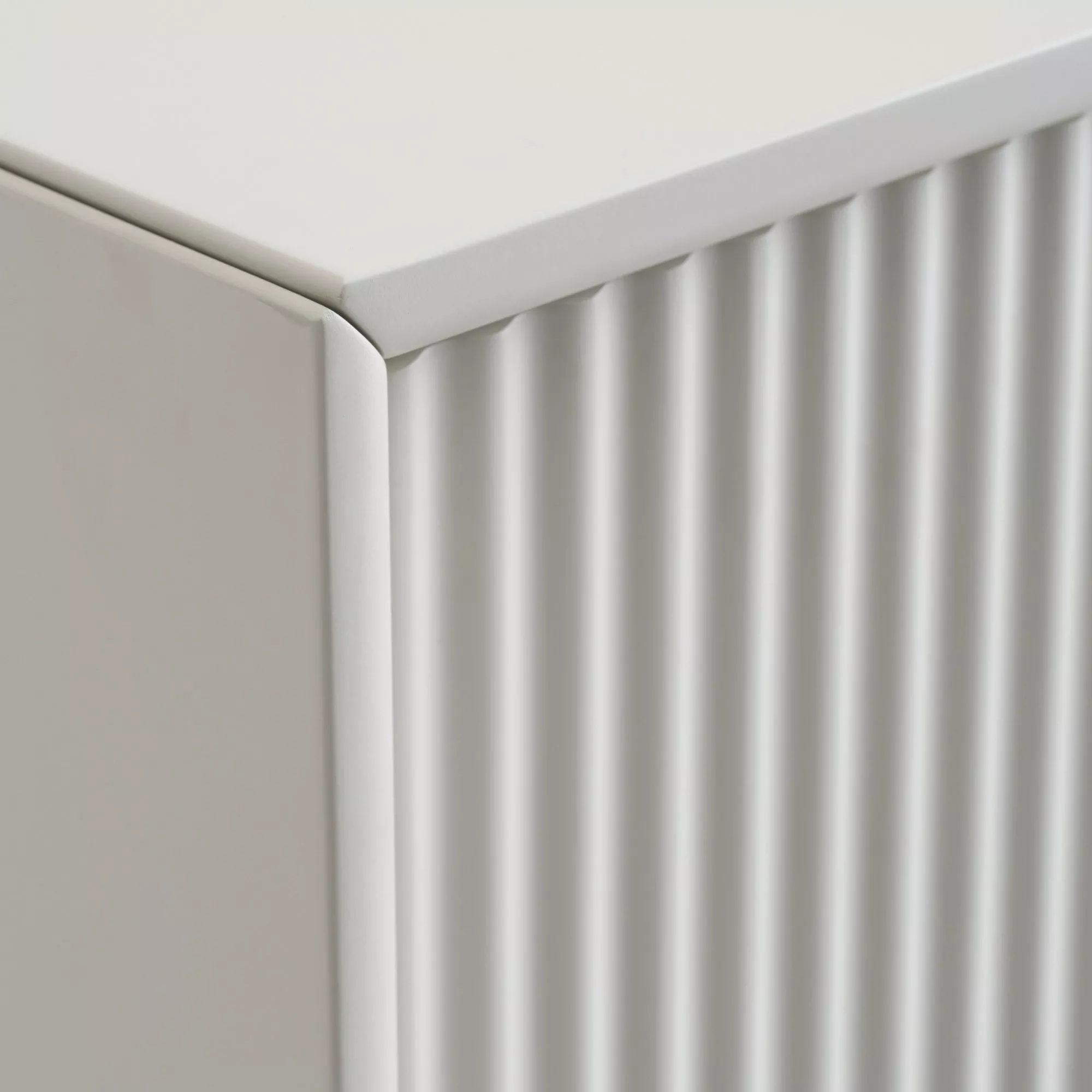 Mit ihren markanten, geriffelten Fronten verleiht Palma jedem Raum eine edle und moderne Note. Das robuste Gestell und die stilvollen Griffe aus Metall ebenfalls in der Farbe Greige ergänzen das Design perfekt und sorgen für eine harmonische Gesamterscheinung. Durch die klare Linienführung und das dezente Dekor lässt sich diese Kommode nahtlos in verschiedene Einrichtungsstile integrieren.