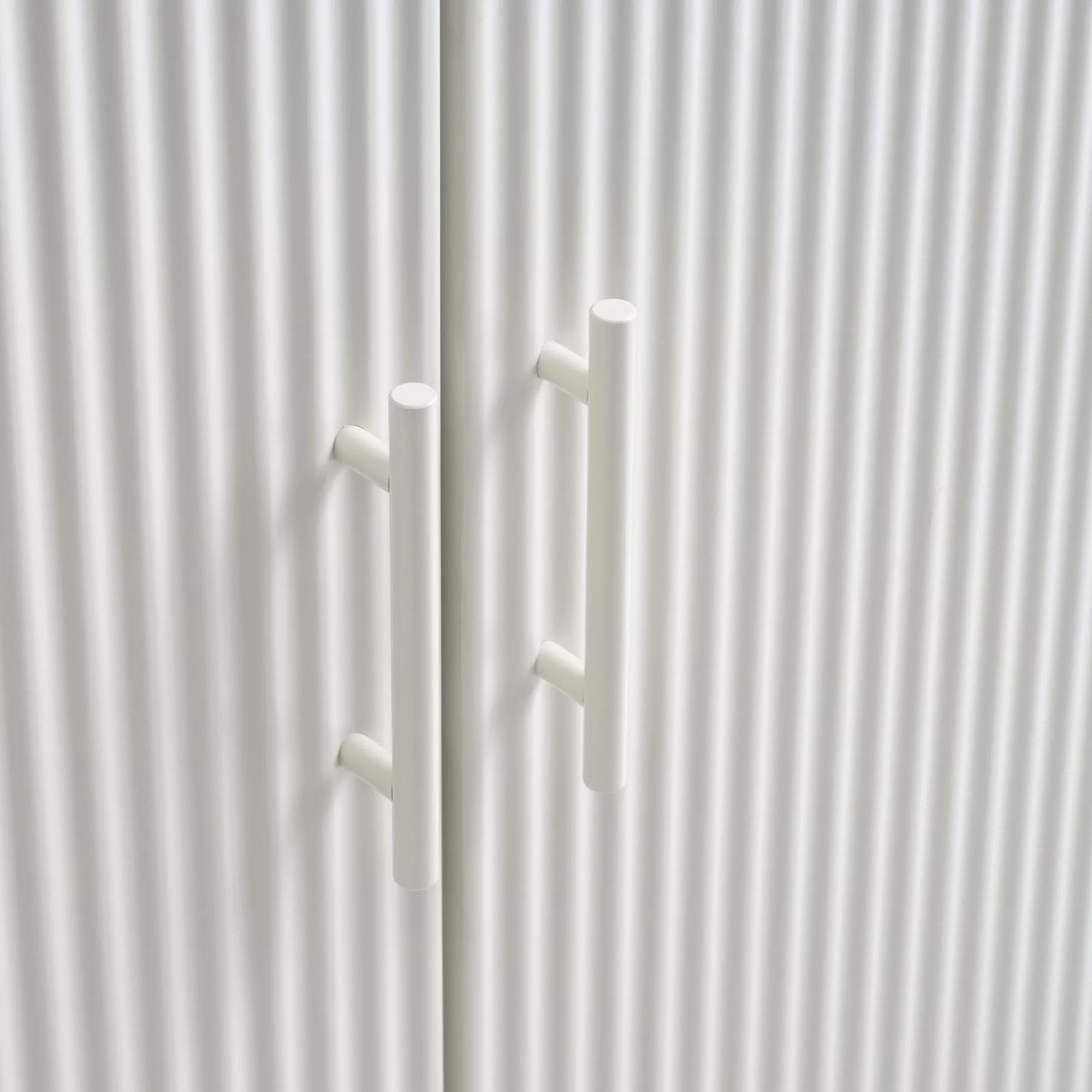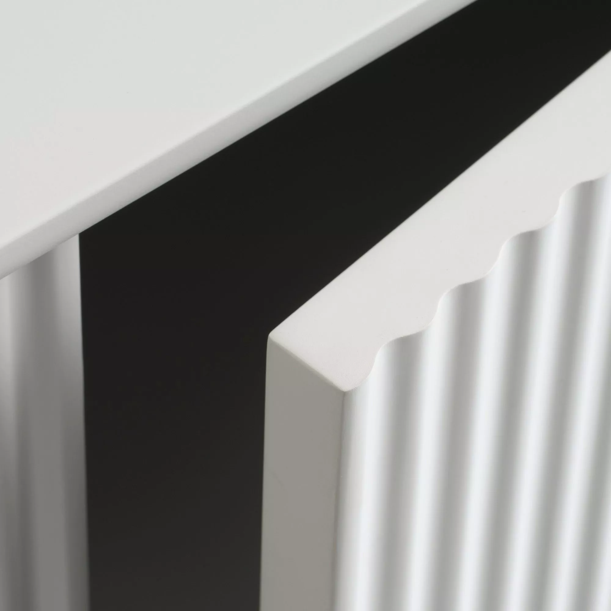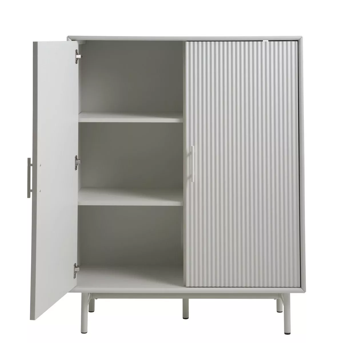 Mit ihren markanten, geriffelten Fronten verleiht Palma jedem Raum eine edle und moderne Note. Das robuste Gestell und die stilvollen Griffe aus Metall ebenfalls in der Farbe Greige ergänzen das Design perfekt und sorgen für eine harmonische Gesamterscheinung. Durch die klare Linienführung und das dezente Dekor lässt sich diese Kommode nahtlos in verschiedene Einrichtungsstile integrieren.