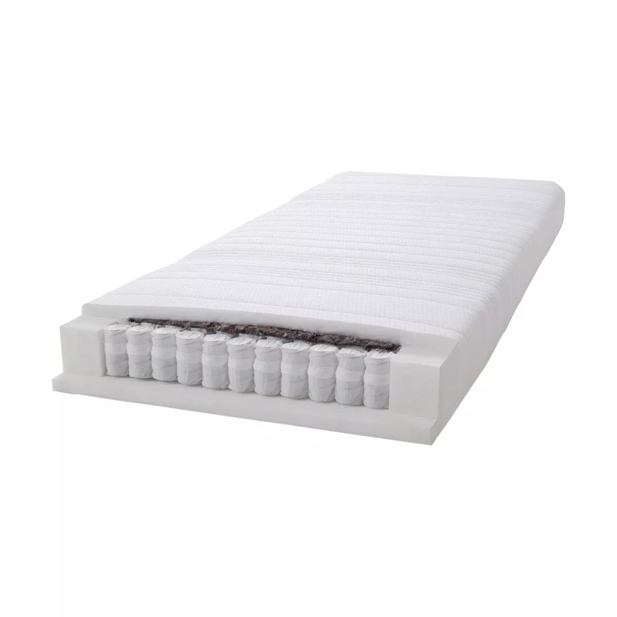 Die Matratze verfügt über einen hochwertigen 7-Zonen-Tonnentaschenfederkern mit etwa 500 Federn pro Quadratmeter, der für eine optimale Druckentlastung und Unterstützung sorgt.