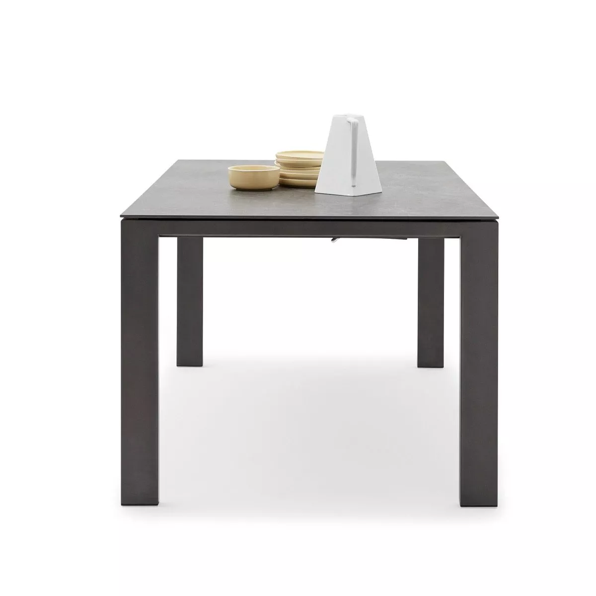 Aber auch optisch kann Dekton mithalten, denn die schöne Struktur wertet jeden Raum auf. Die Klappeinlage ist in Schwarz gehalten und setzt einen leichten Kontrast. Für die nötige Stabilität sorgt das Tischgestell aus pulverbeschichtetem Metall in Anthrazit.