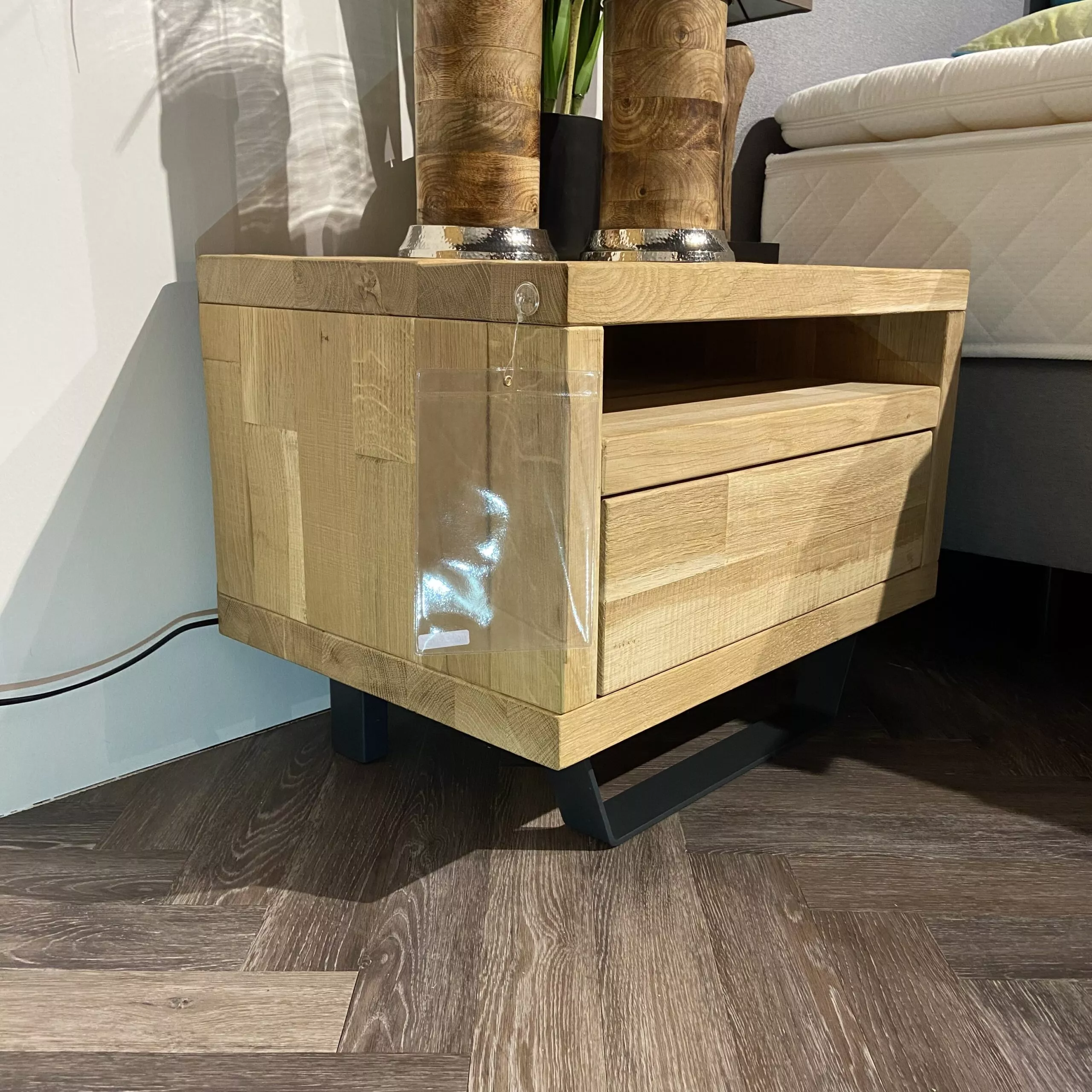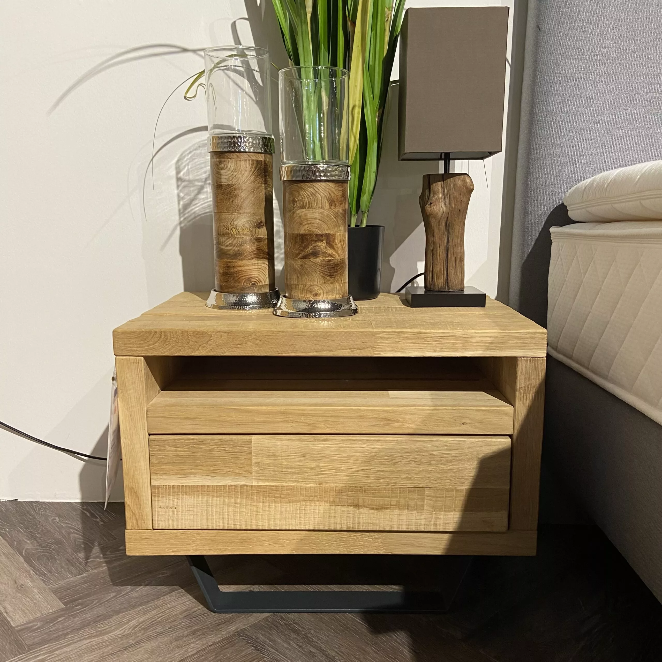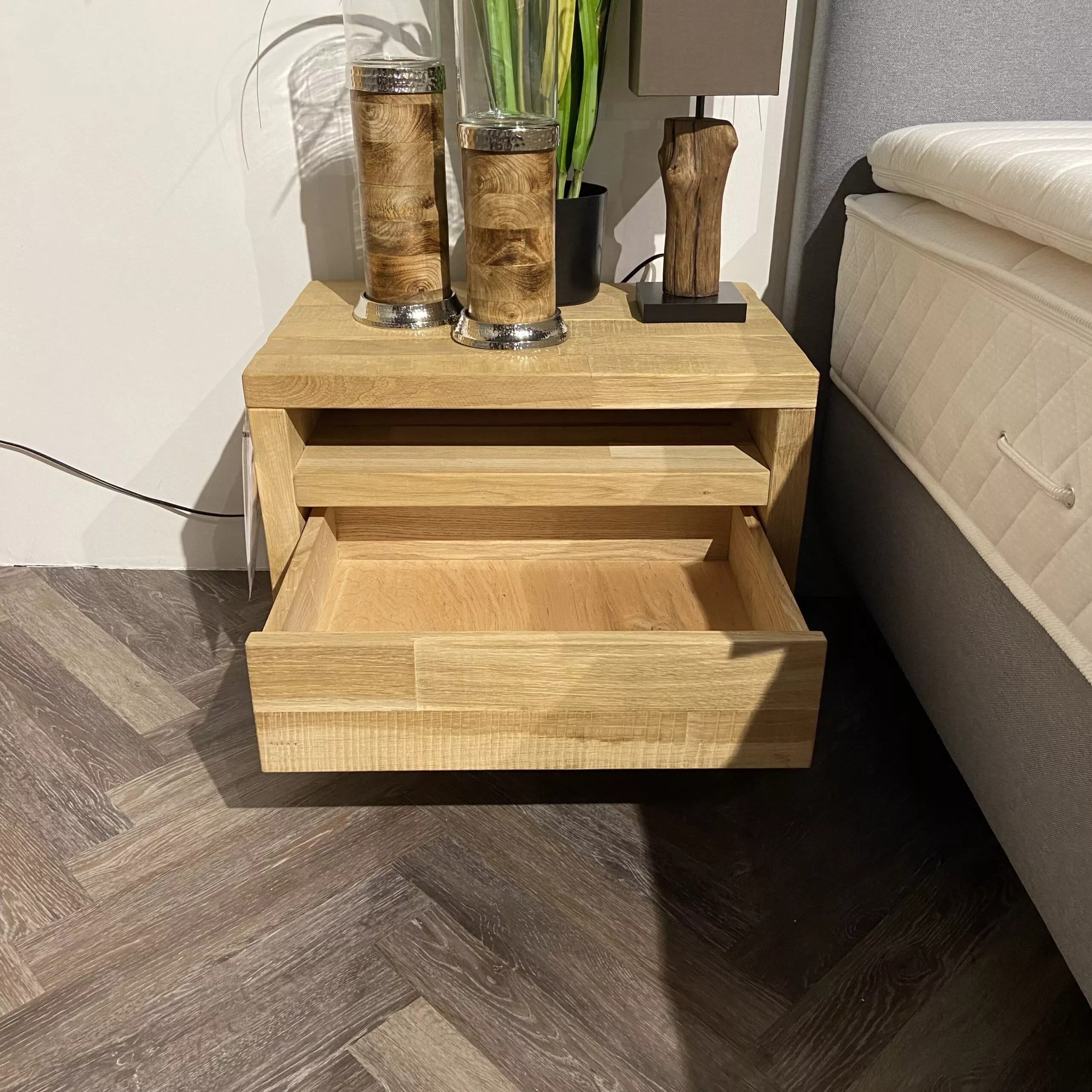 Moderne Nachtkonsolen aus Timber Look massiv.