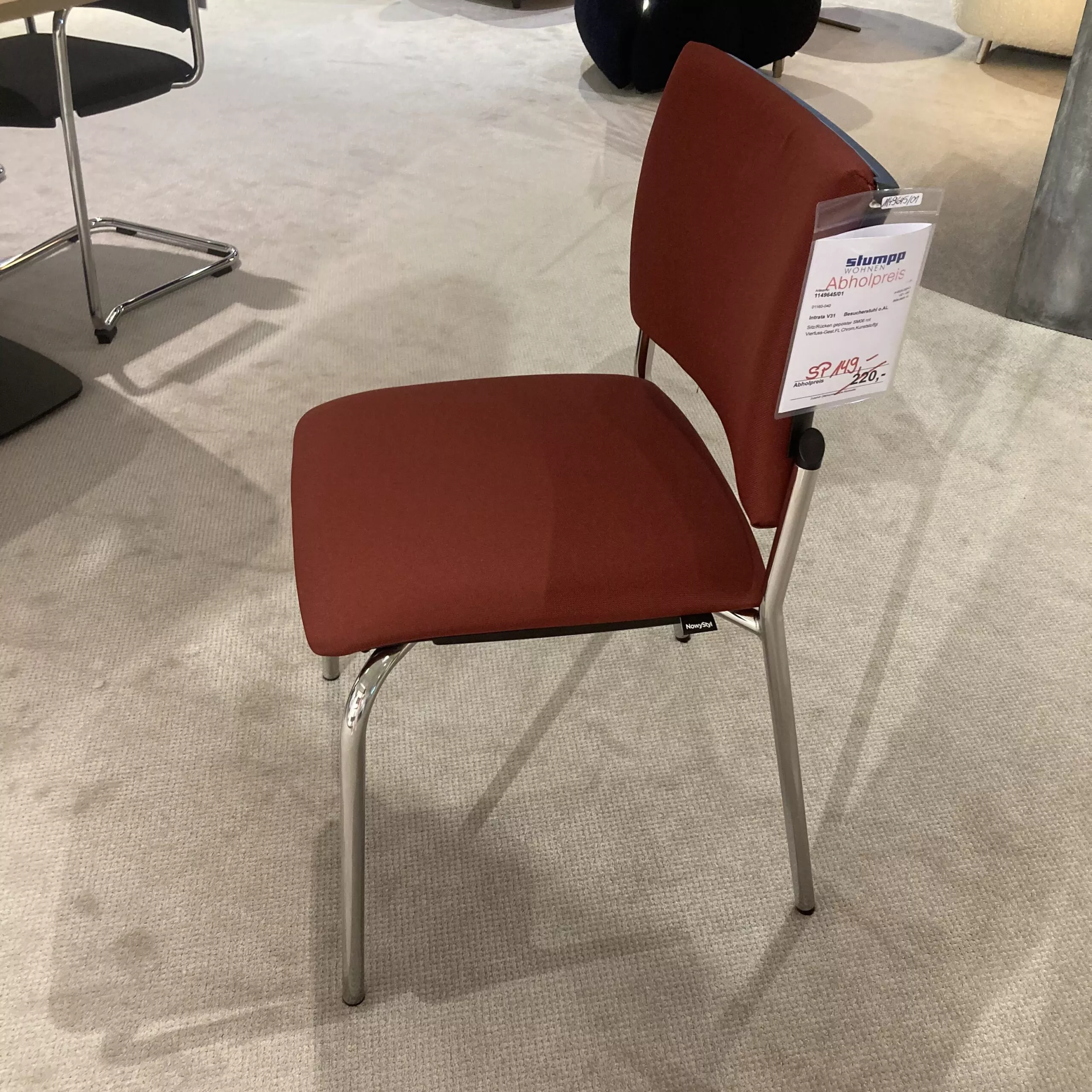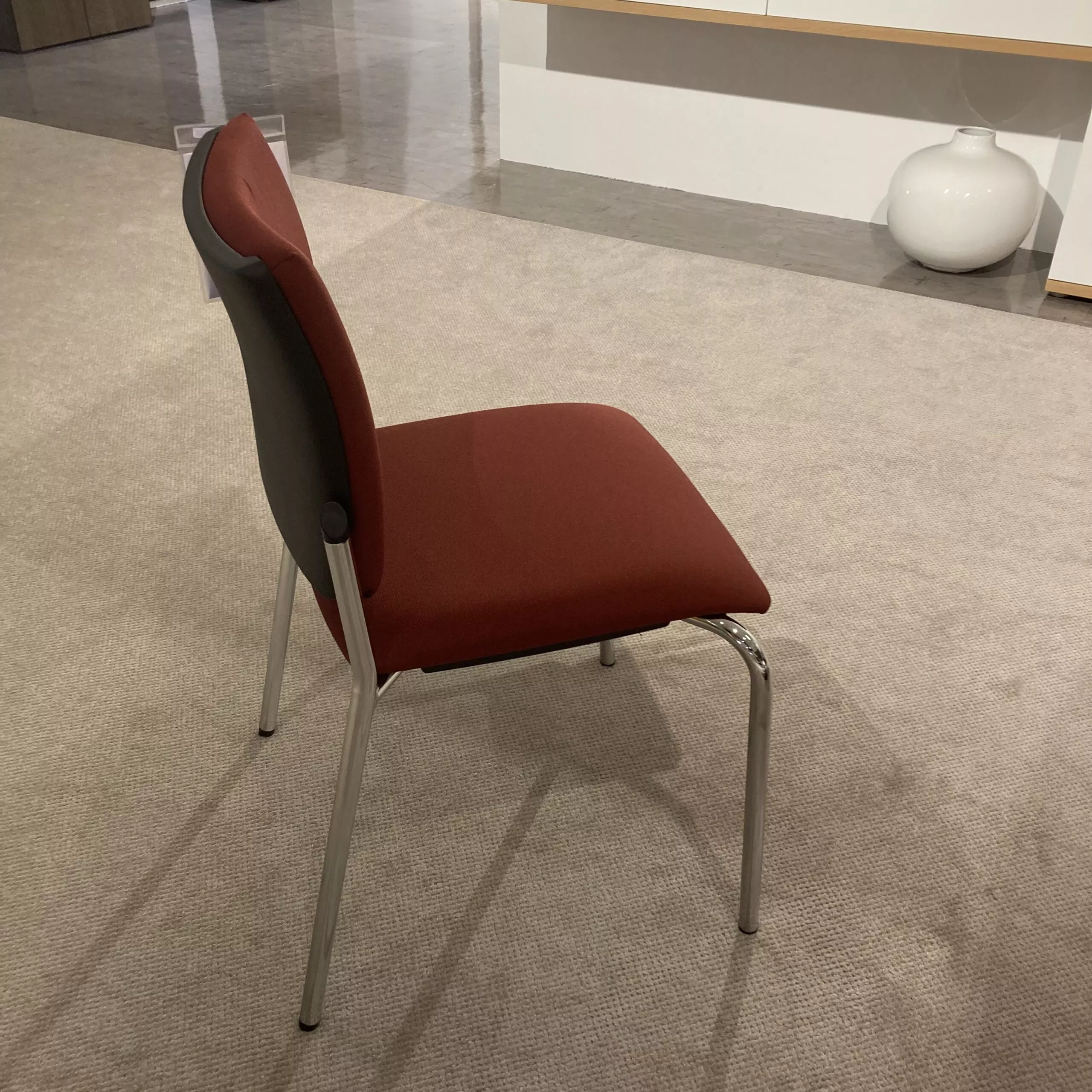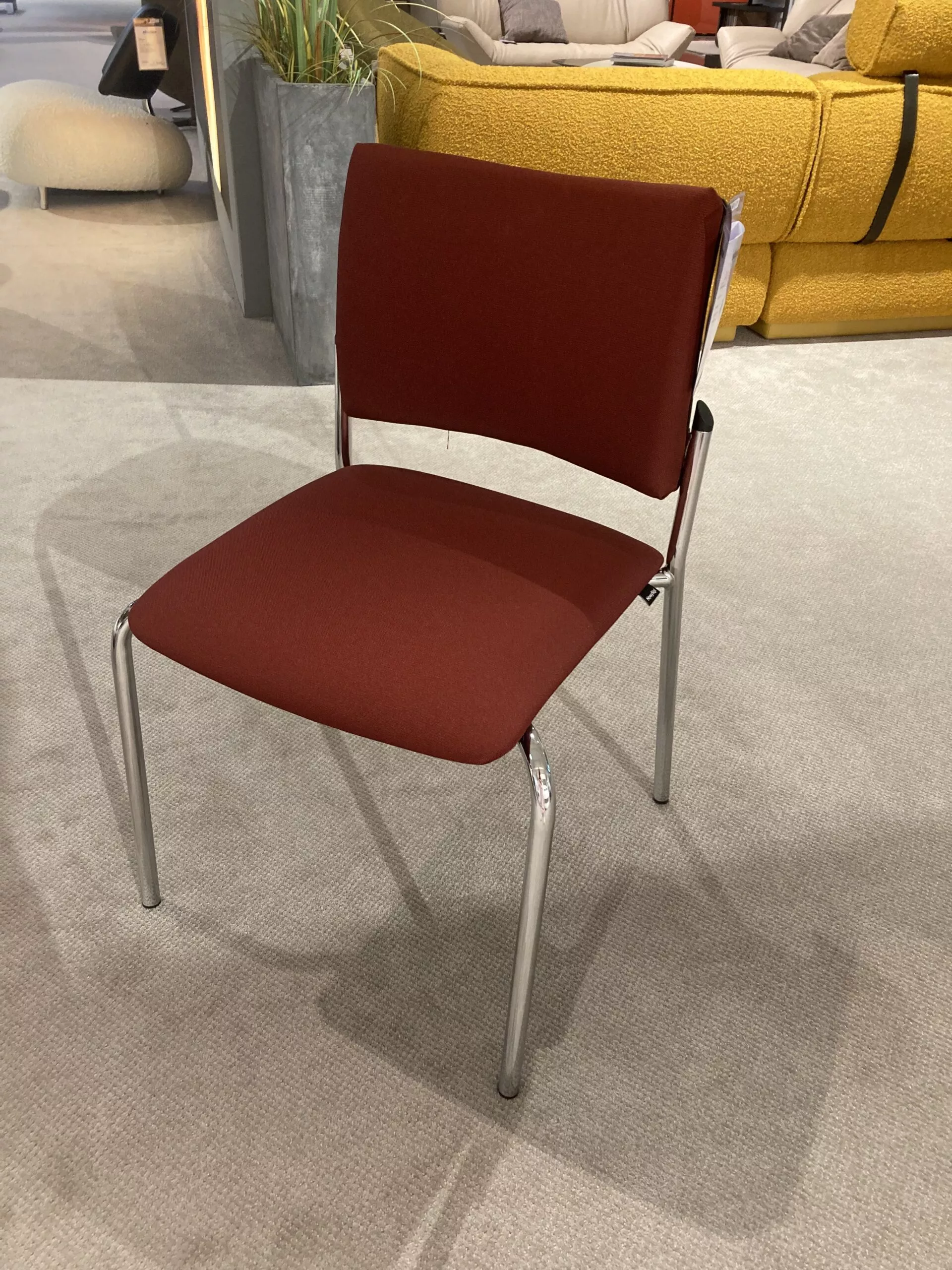 Stilvoller Besucherstuhl von Noxy Styl mit einem Bezug aus Stoff gepolstert in Rot und einem 4-Fuß Gestell in Chrom.