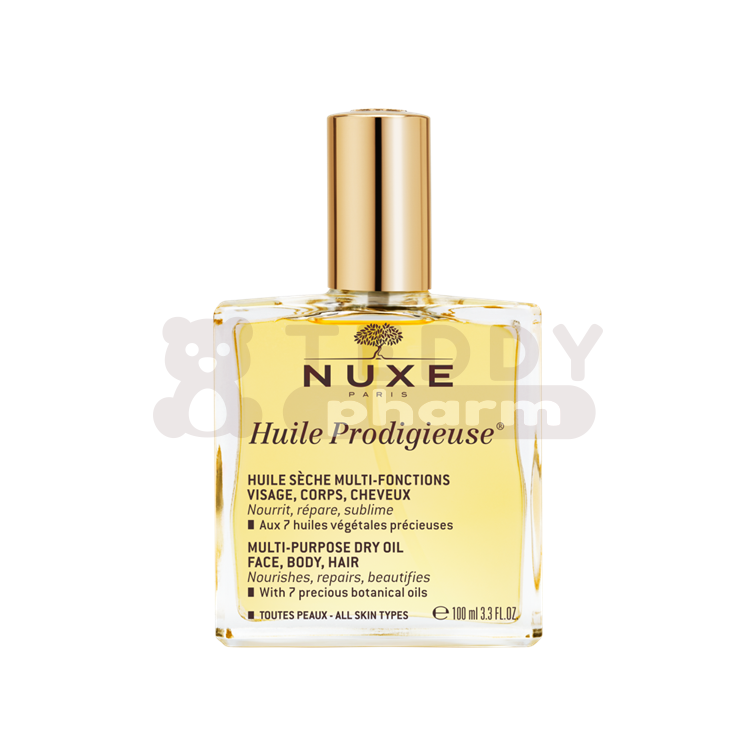 Genießen Sie den legendären Cocktail aus sieben wertvollen und zu 100 % pflanzlichen Ölen von Huile Prodigieuse® – nährt, repariert und perfektioniert Gesicht, Körper und Haare in nur einem Schritt.