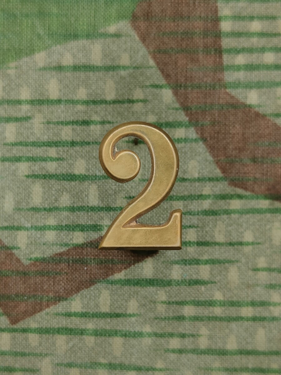 Die Nummer ist aus Knopfmetall gefertigt und misst ca. 25 mm in der Höhe. Die Nummer wird oberhalb des Schirms am Hutband mittels Befestigungsdrähten montiert. Sie wurden für die Tschakos der Ord. 1869, 1875, 1888 und 1898 verwendet.