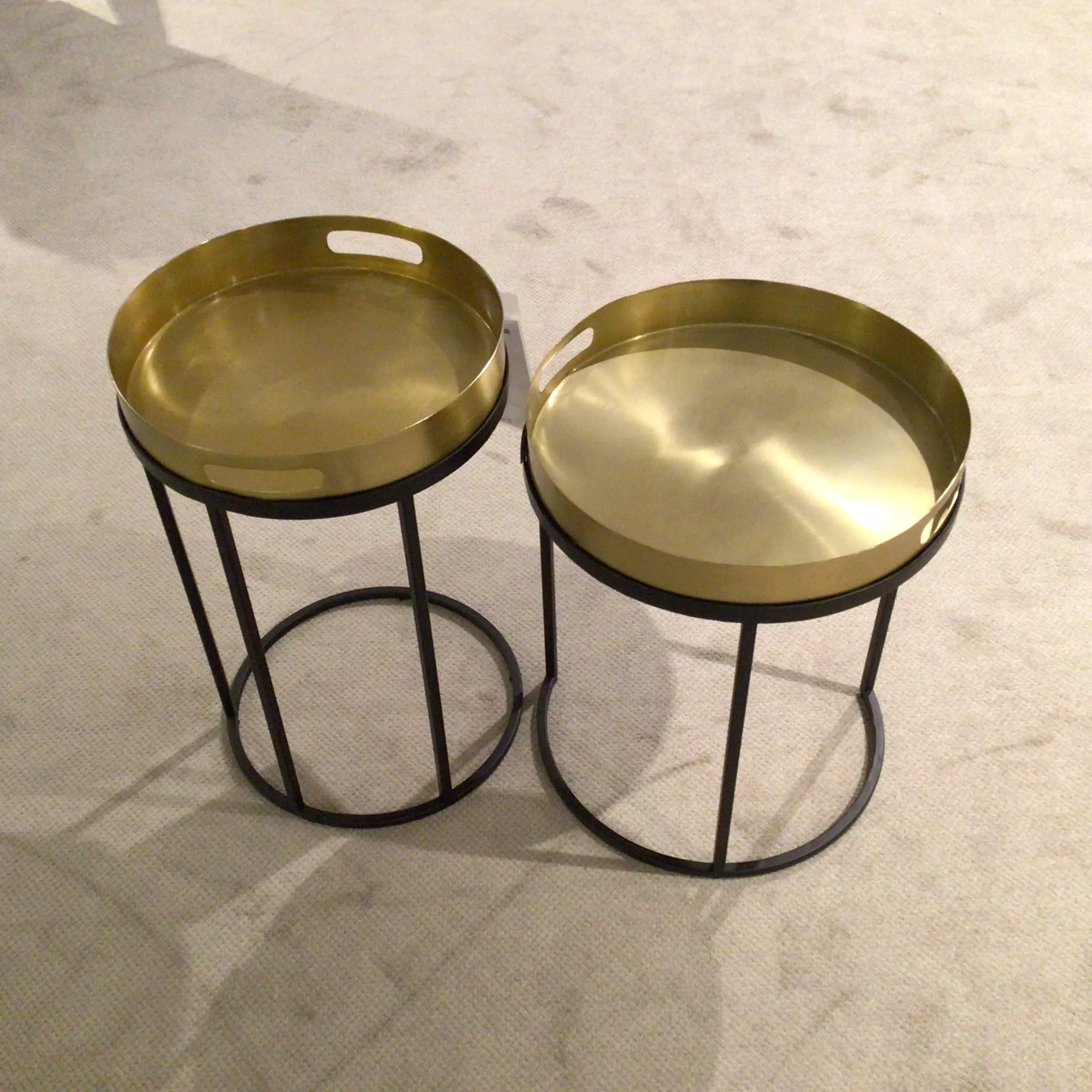 Zeitloser 2er Set Beistelltisch in Gold mit abnehmbarer Platte.