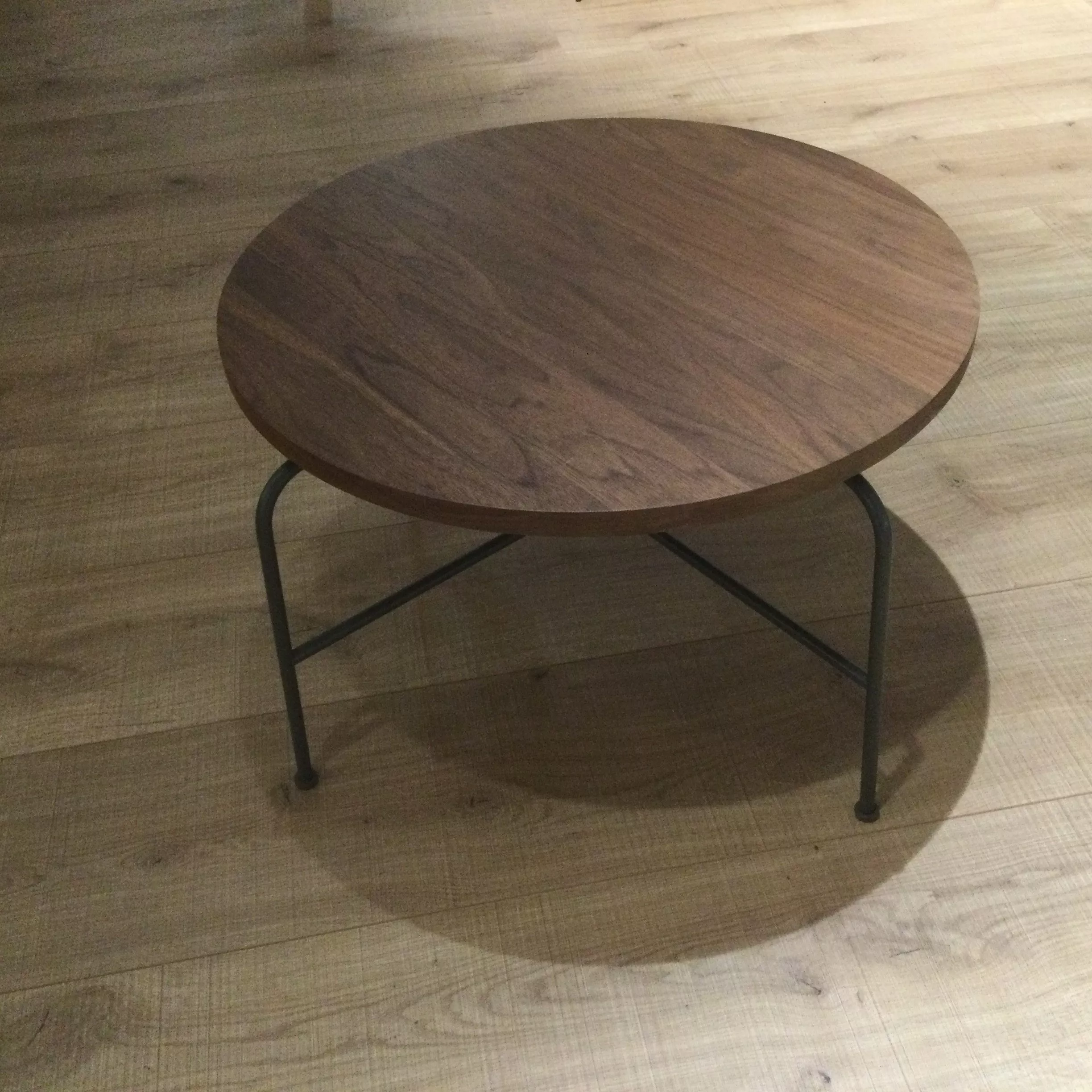 Runder Couchtisch in Nussbaum massiv.