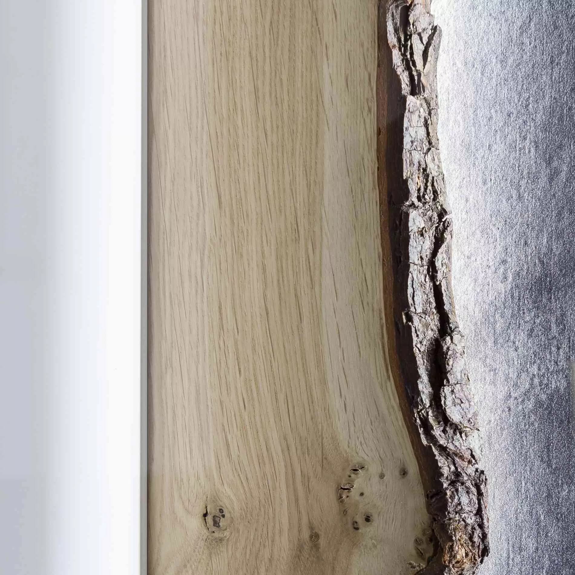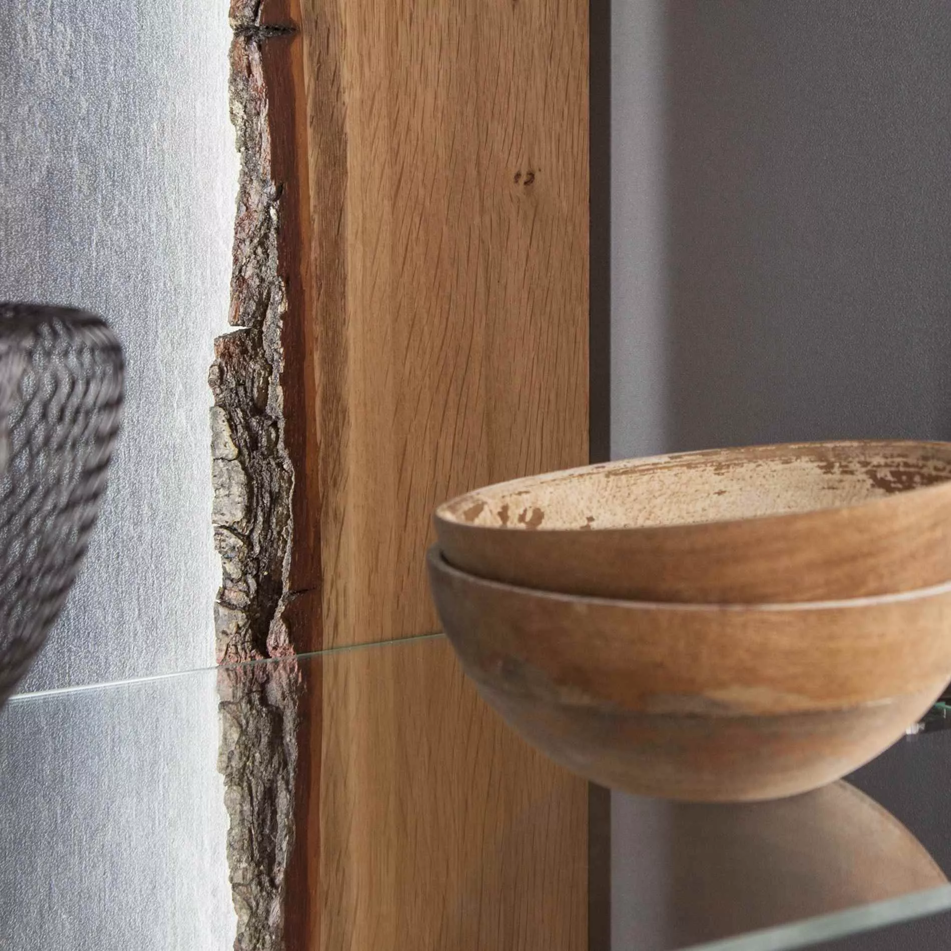 • Rückwand in massiver Rindholz-Eiche lackiert mit Schiefer-Optik