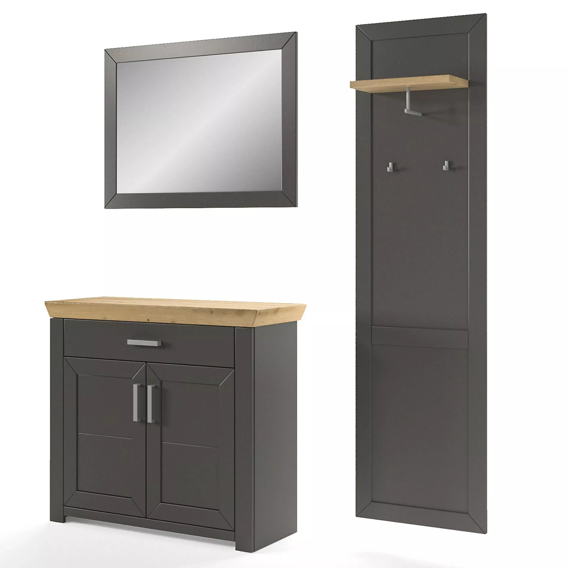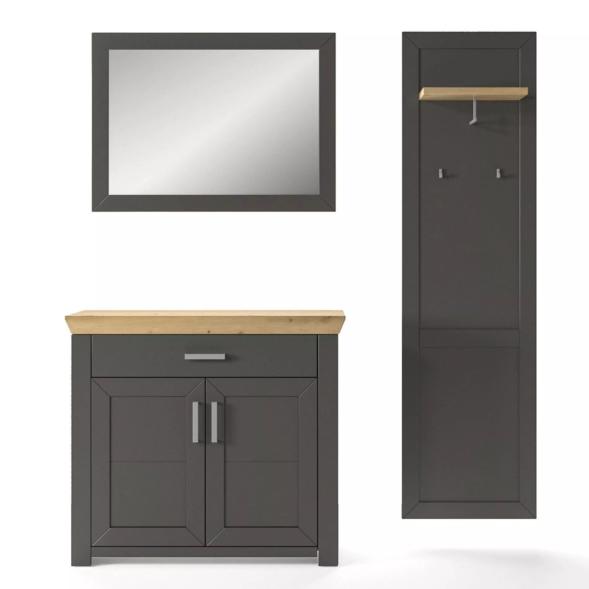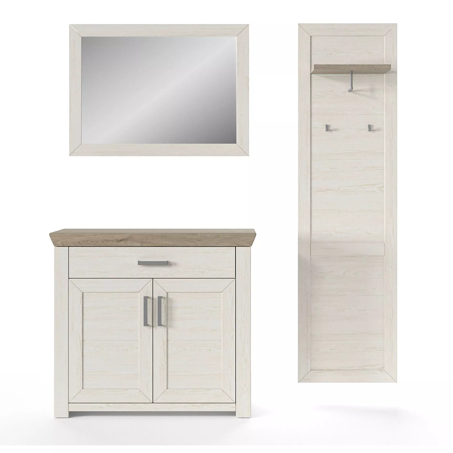 Mit dem Garderobenprogramm GA-59 schaffen Sie stilvoll Ordnung in Ihrem Eingangsbereich. Das dreiteilige Set besteht aus einem Garderobenpaneel, einem Sideboard und einem Spiegel. Das Sideboard hat zwei Türen und eine Schublade, die mit Soft-Close Funktion ausgestattet ist. Hier können Sie Accessoires und Schuhe wunderbar verstauen. Mäntel und Jacken finden Ihren Platz am Garderobenpaneel und im Spiegel können Sie vor verlassen der Wohnung das Outfit checken.