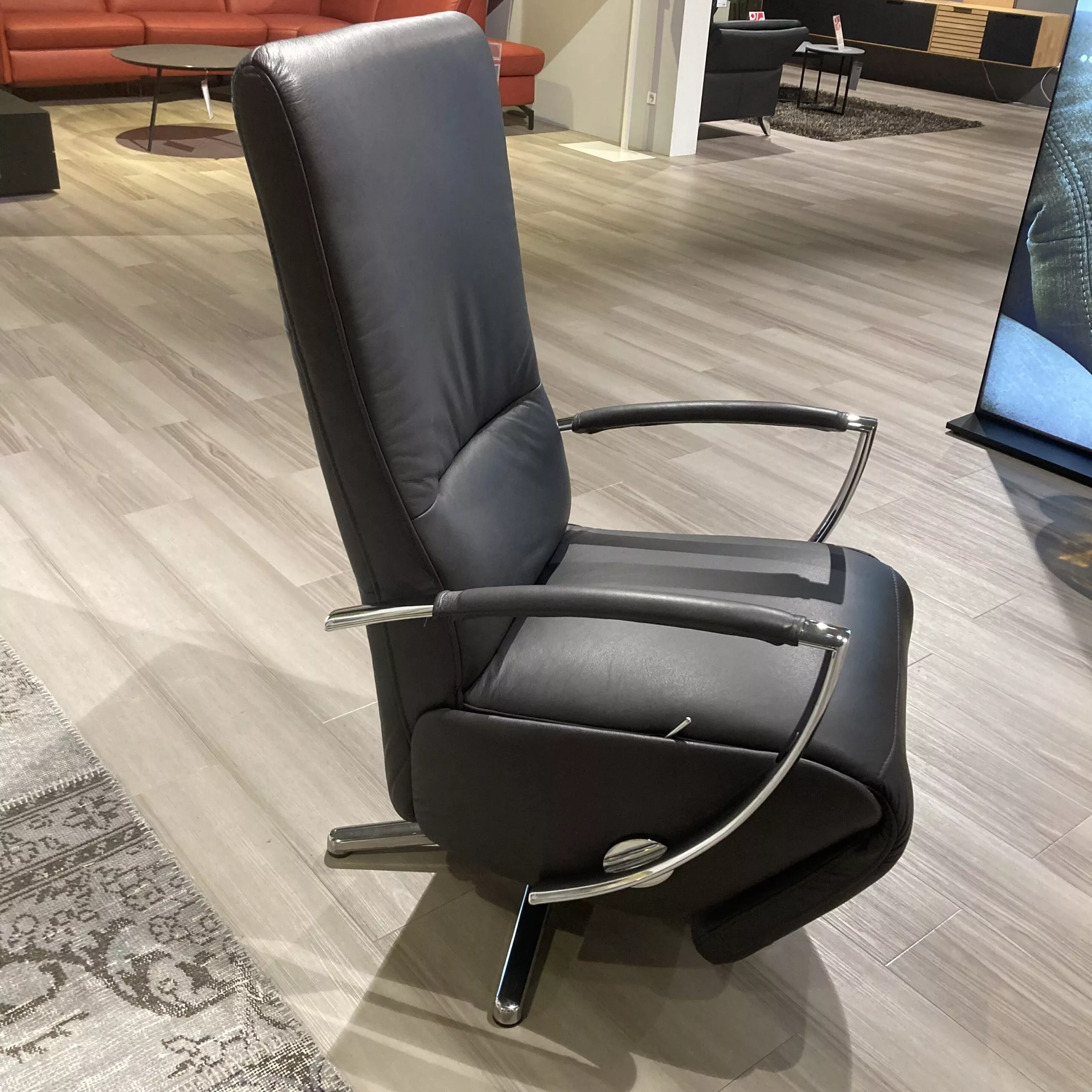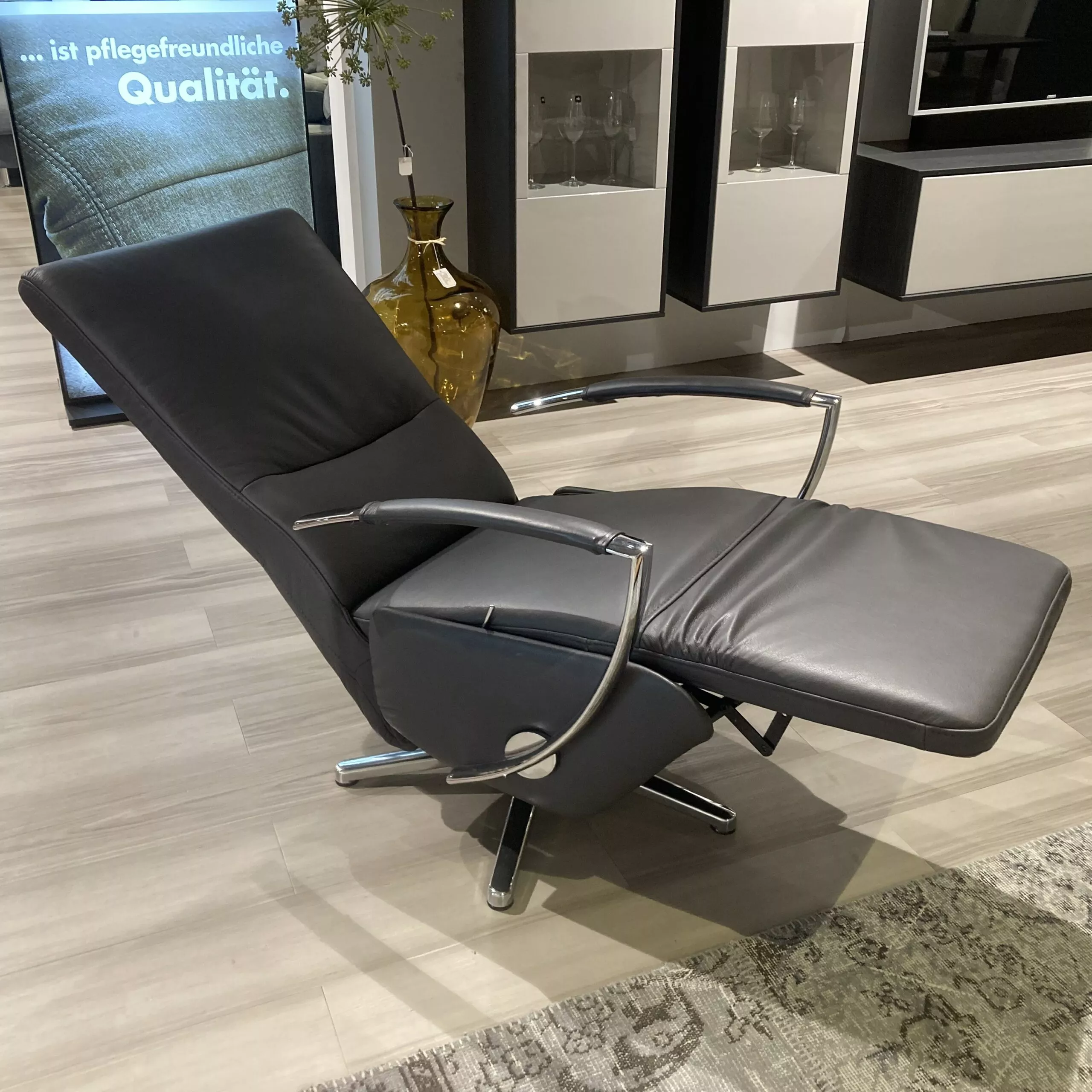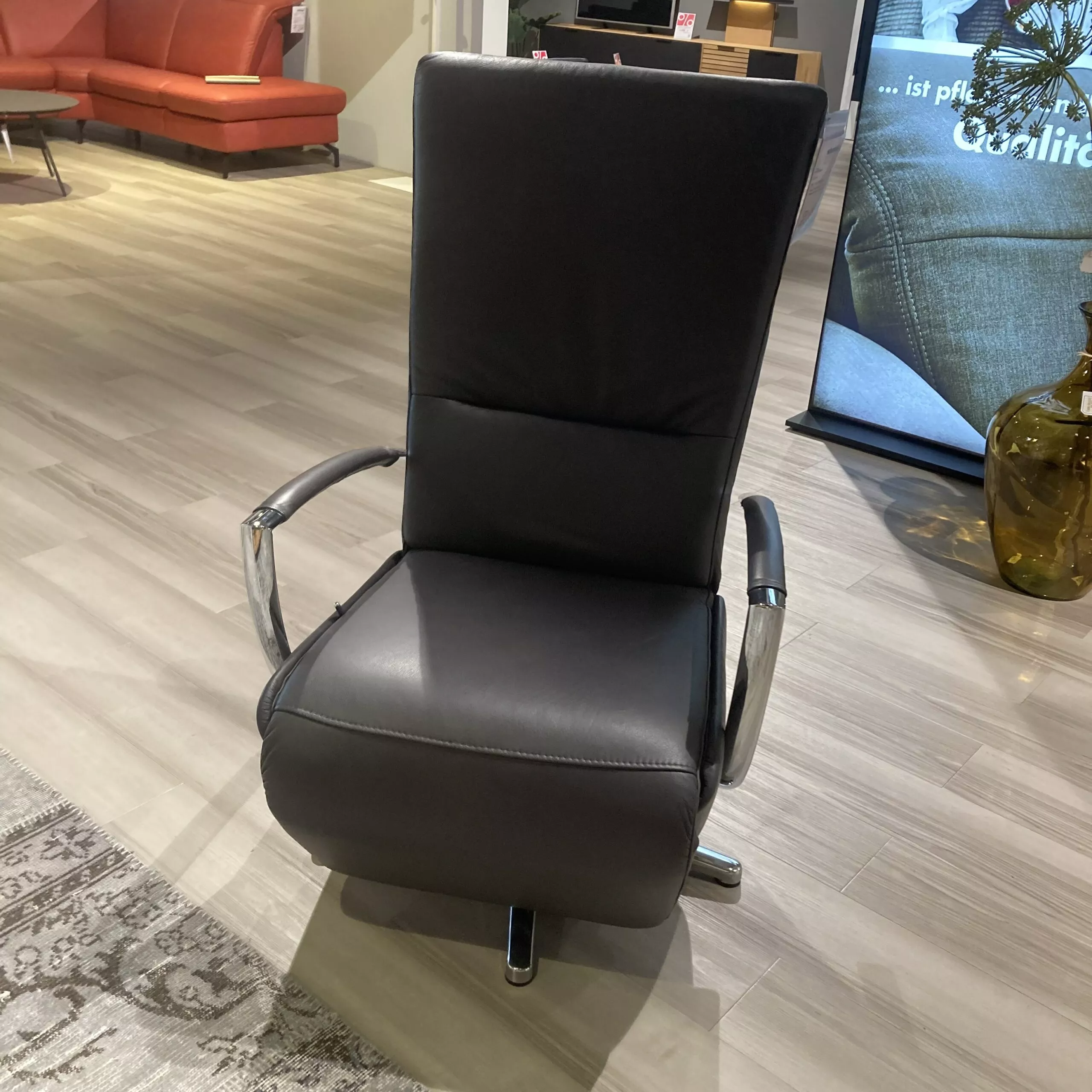Eleganter Drehsessel von Steinpol Poco aus Leder in Anthrazit, mit Kopfteilverstellung und Gasfederung.
