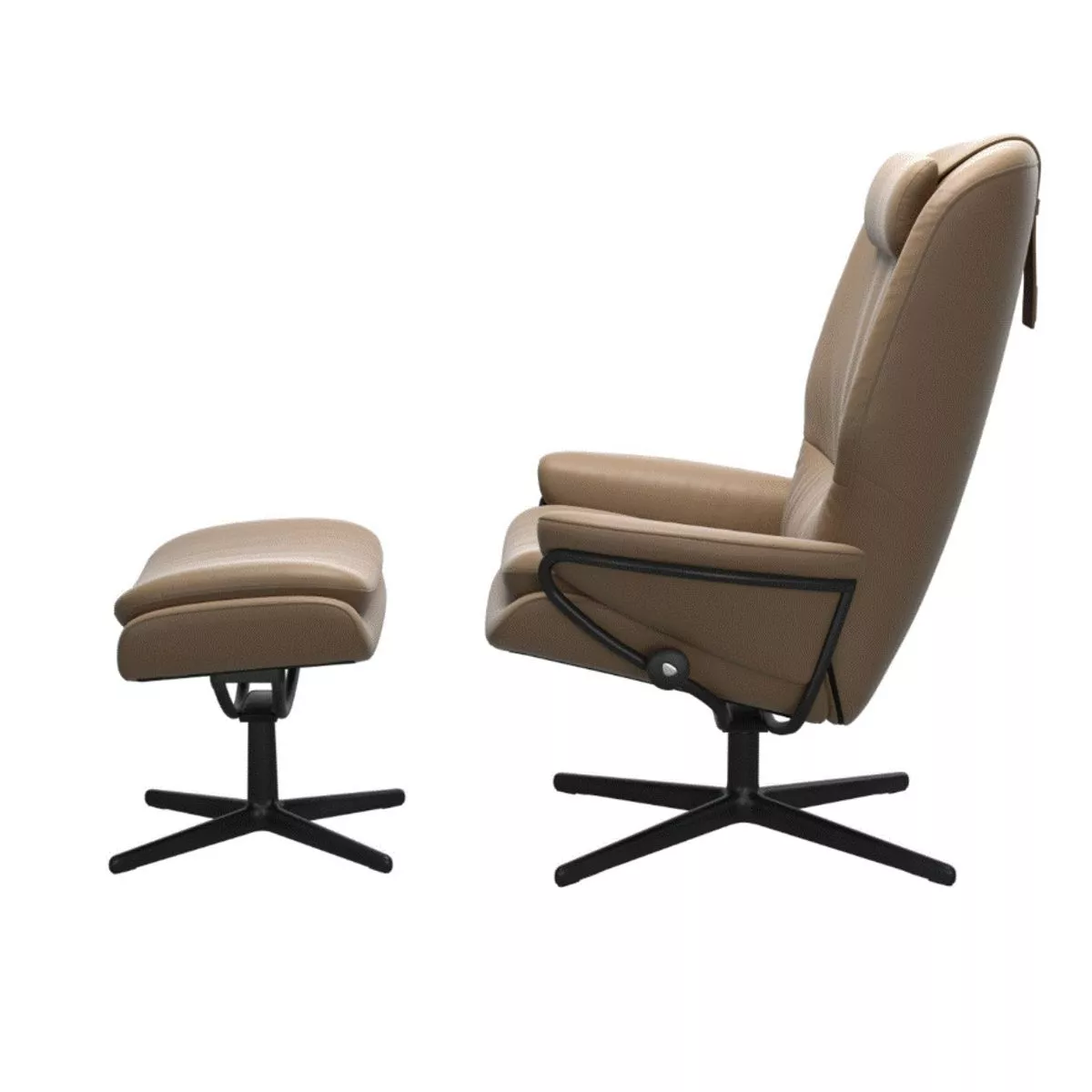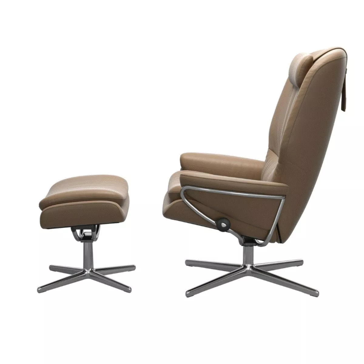 Mit dem Rome Sessel Cross High Back der Marke Stressless erhalten Sie eine perfekte Mischung aus Stil und Komfort. Seine patentierte manuelle Relax-Funktion ist perfekt für jeden, der sich gerne zurücklehnen und entspannen möchte. Zusammen mit dem Fußhocker schaffen Sie sich Ihre Entspannungsoase. Wählbar in zwei Ledervarianten und zwei Gestell-Farben, können Sie diesen Sessel nach Ihren Vorstellungen gestalten.