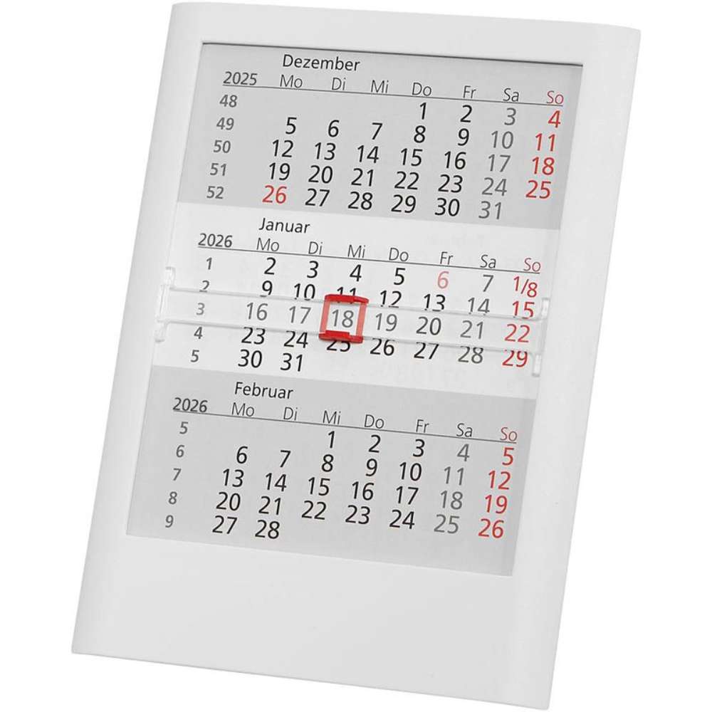 Organisiere dich stilvoll mit dem Tischkalender 2025/2026 in strahlendem Weiß.