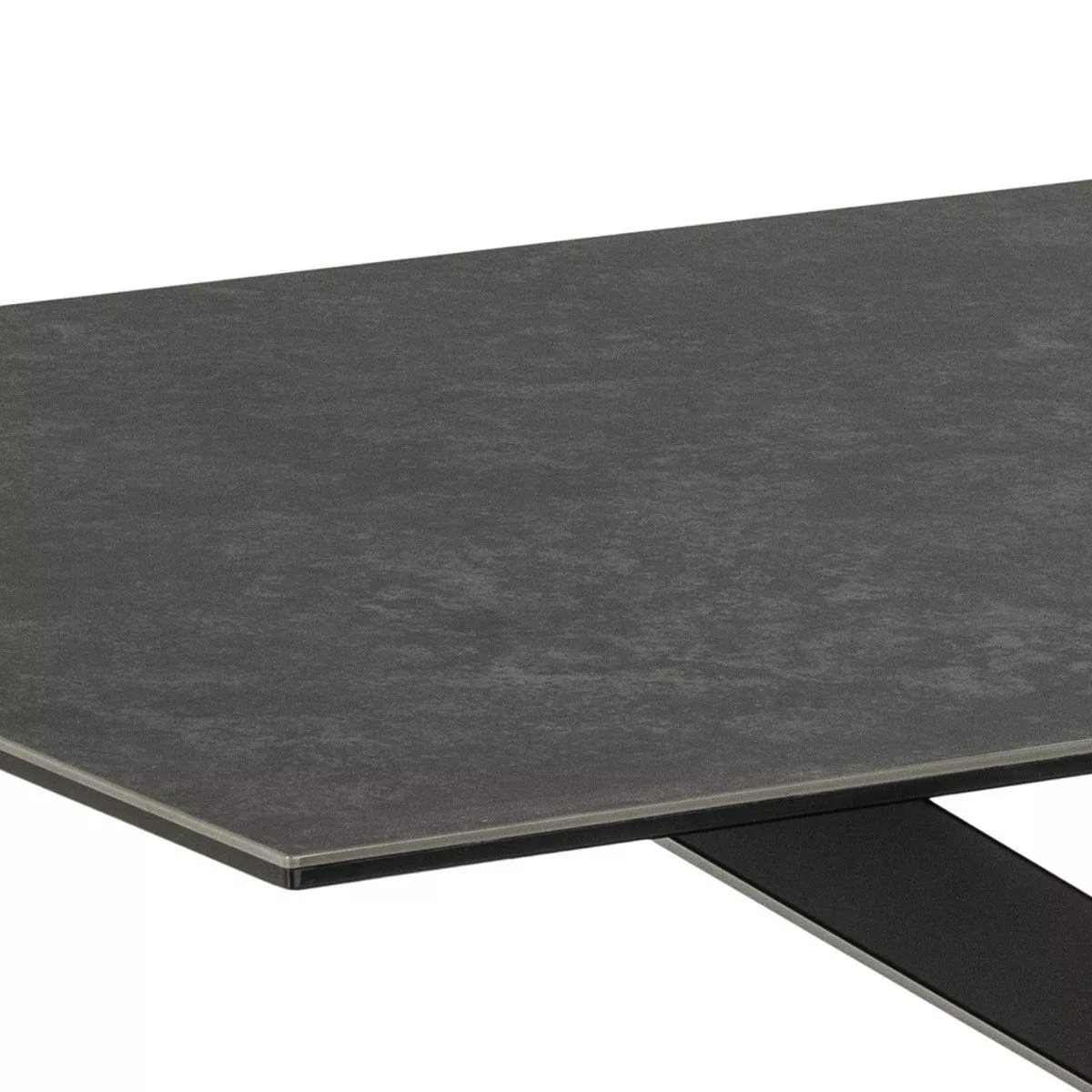 Das geometrisch gekreuzte Metall-Gestell in Schwarz matt ist eine optimale Ergänzung zur Platte. Das Gestell bietet einen festen Stand und ist äußerst robust.