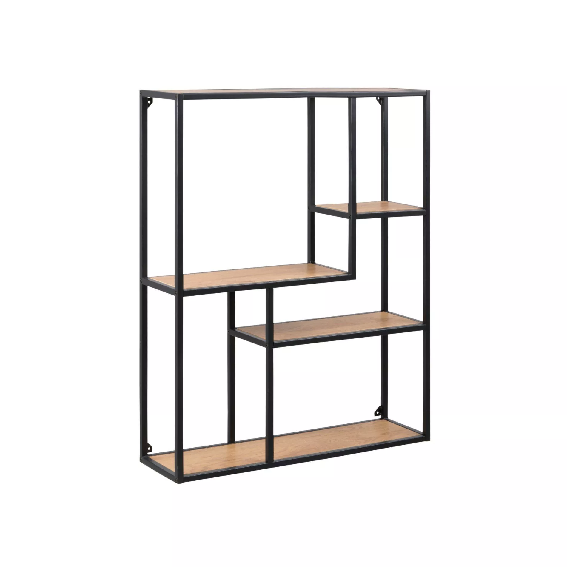 Nicht nur mit viel Stauraum überzeugt das moderne Regal Auroa, denn es ist ein Möbelstück in außergewöhnlicher asymmetrischer Optik. Welches für ein geschmackvolles Ambiente sorgt und Ihnen ein Flair im Industrial-Stil in Ihren Wohnräume zaubert. Auffällig sind die praktischen unterschiedlich angeordneten offenen Fächer. Abgerundet wird das Design durch den gelungenen Kontrast zwischen dem pulverbeschichteten Metall-Gestell in schwarz matt und den fünf Regalböden aus MDF-Platten in Wildeiche-Nachbildung. Die fünf Regalböden bieten reichlich Platz für jede Menge Bücher, aber auch Wohnaccessoires wie Vasen, Bilderrahmen und Figuren kommen hier ideal zur Geltung. Kein Wunder also, dass Sie sich hier richtig kreativ austoben können. Sie können das Regal auch sehr gut als Raumteiler einsetzen und ist garantiert ein Highlight auf beiden Seiten.