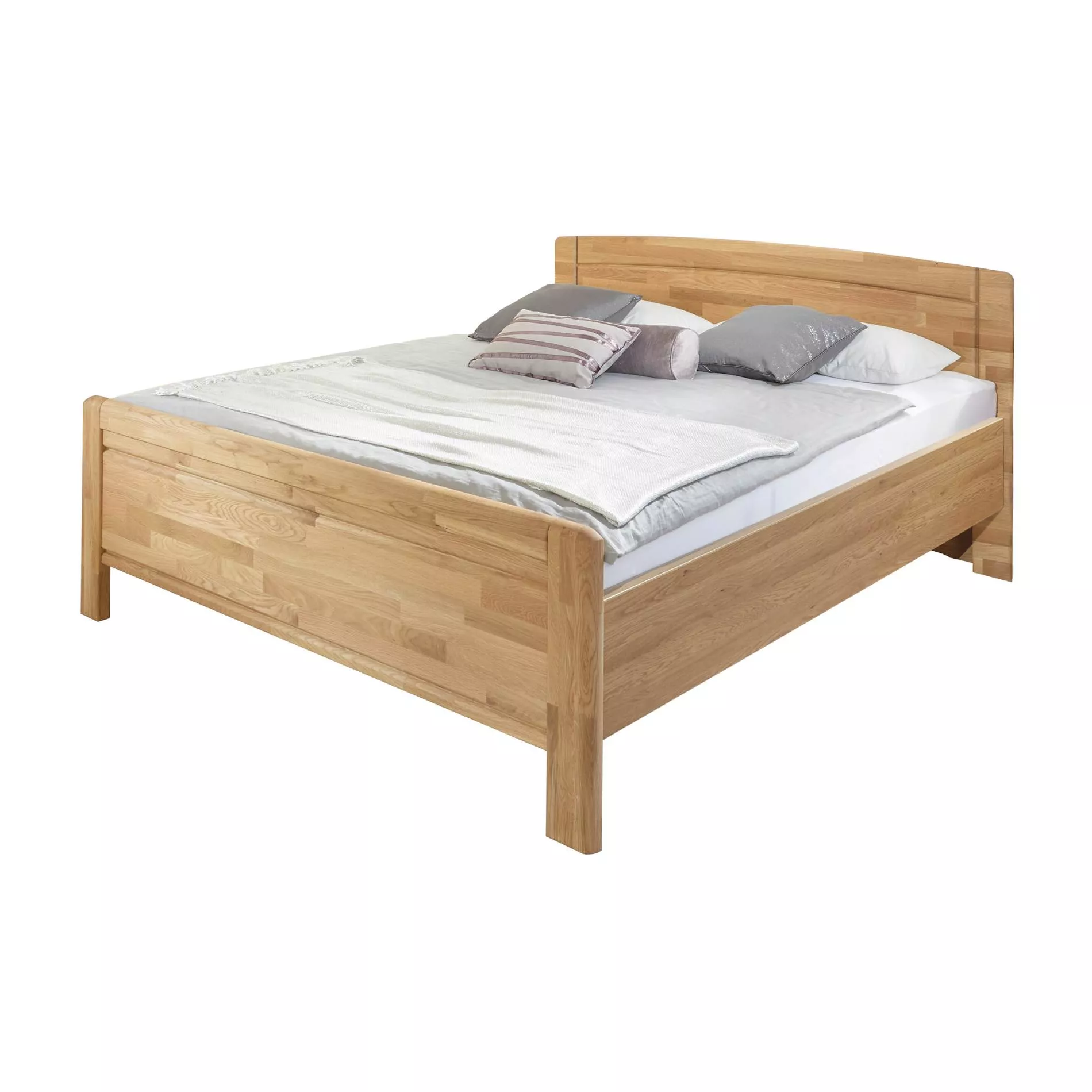 Alle Ecken des Betts sind soft abgerundet. Fräsungen im Kopf- und Fußteil bilden zusätzlich ein kleines optisches Highlight.