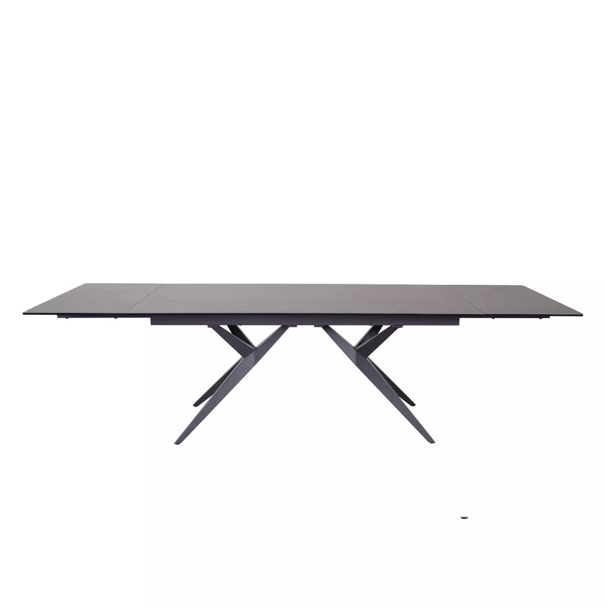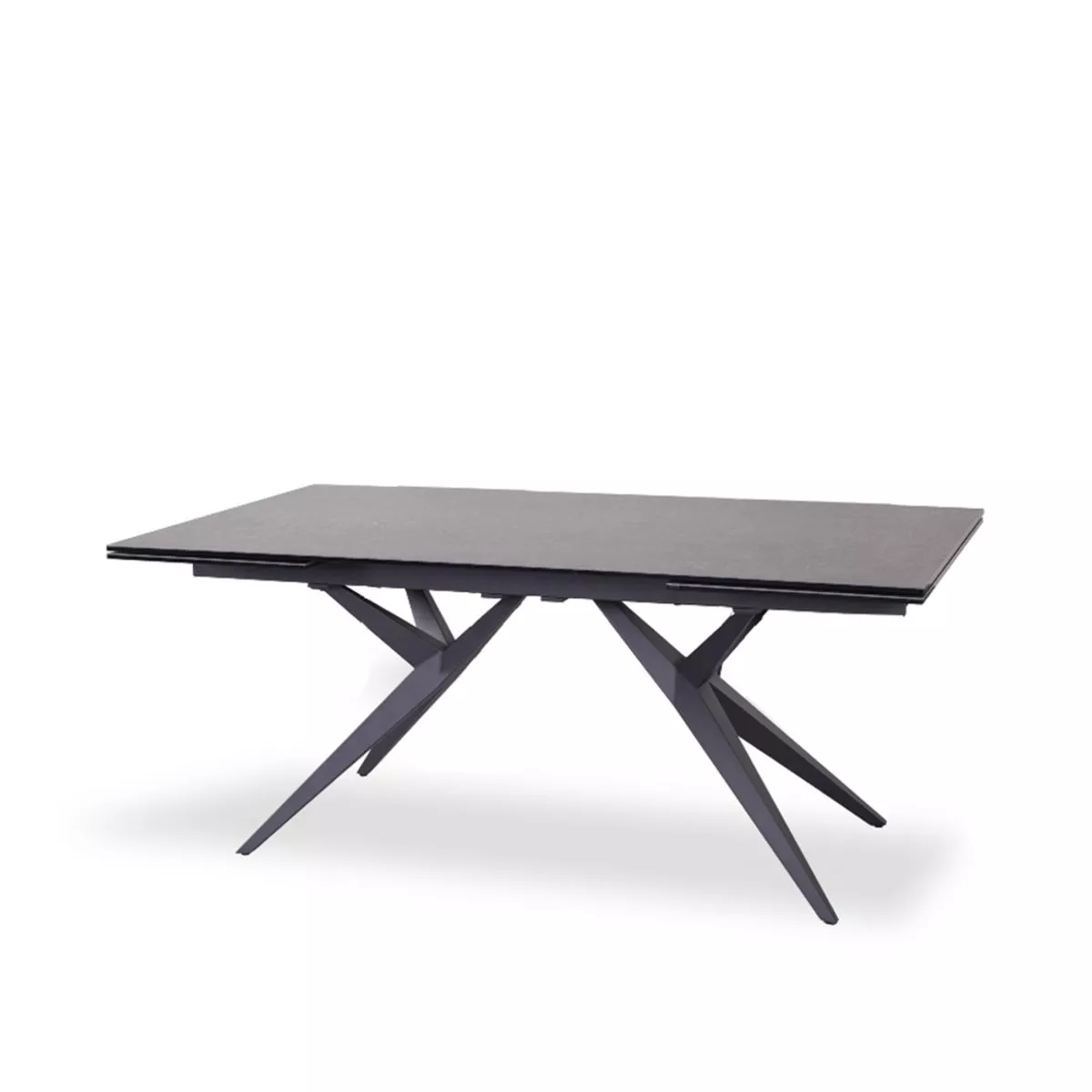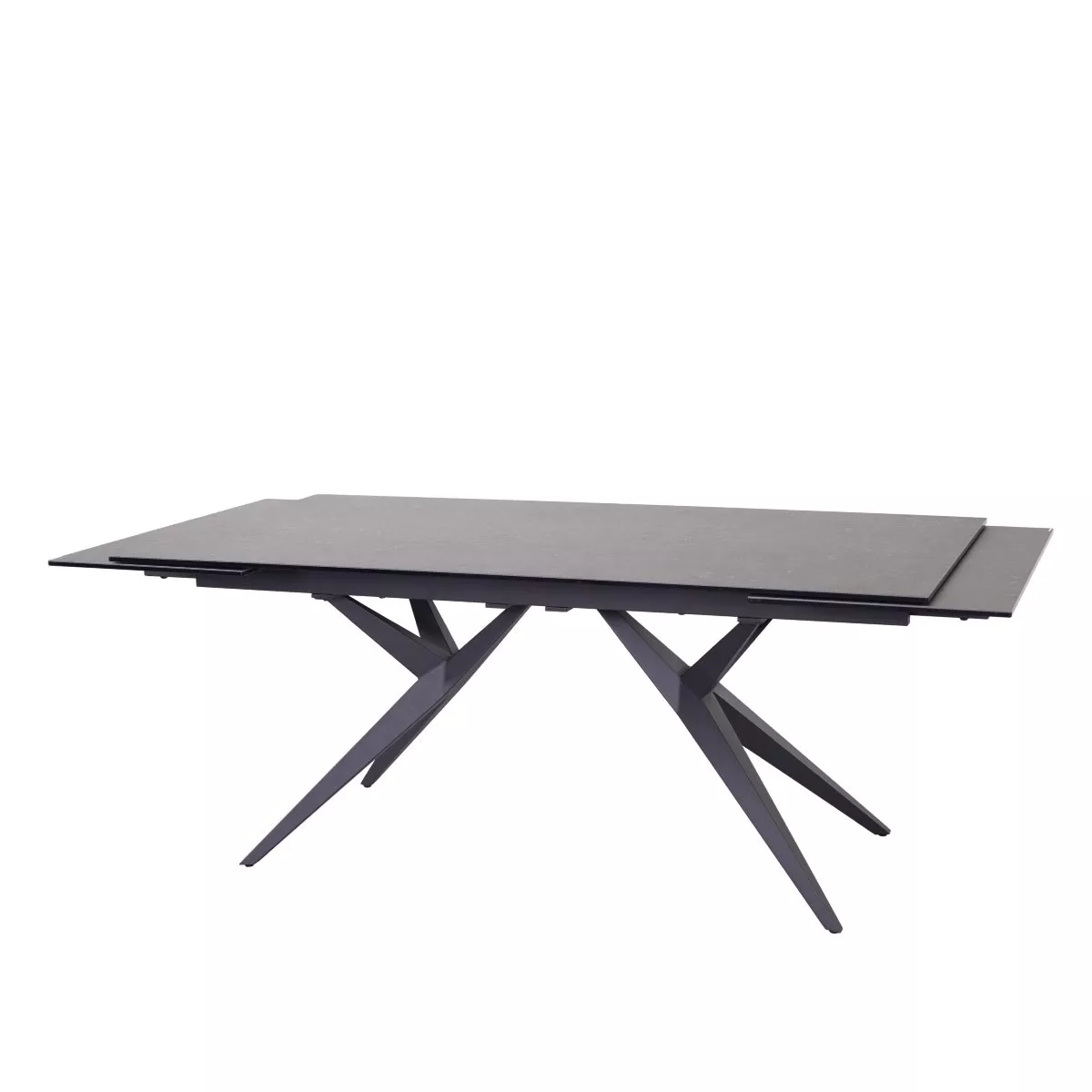 Die Tischplatte des Michela Esstischs besticht durch Glaskeramik in edlem Dunkelgrau. Diese Oberfläche ist nicht nur optisch ansprechend, sondern auch besonders pflegeleicht und robust, sodass sie den täglichen Anforderungen problemlos standhält. Das stabile Gestell aus schwarzem Metall verleiht dem Tisch eine moderne Optik.