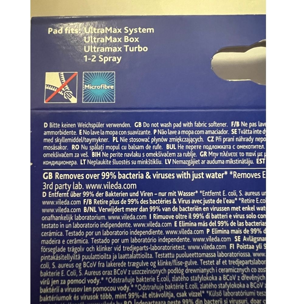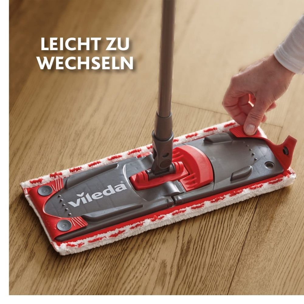 Der Vileda UltraMax Ersatzbezug für Bodenmopps nutzt die 2-in-1-Mikrofasertechnologie: rote und graue Fasern für hartnäckigen Schmutz, weiße Fasern für glänzende Böden. Entfernt über 99% der Bakterien mit nur Wasser. Maschinenwaschbar und wiederverwendbar bei max. 60 °C. Geeignet für alle Hartböden wie Fliesen, PVC, Stein, Holz und Laminat. Kompatibel mit allen Vileda Flachmop-Systemen. Merkmale: