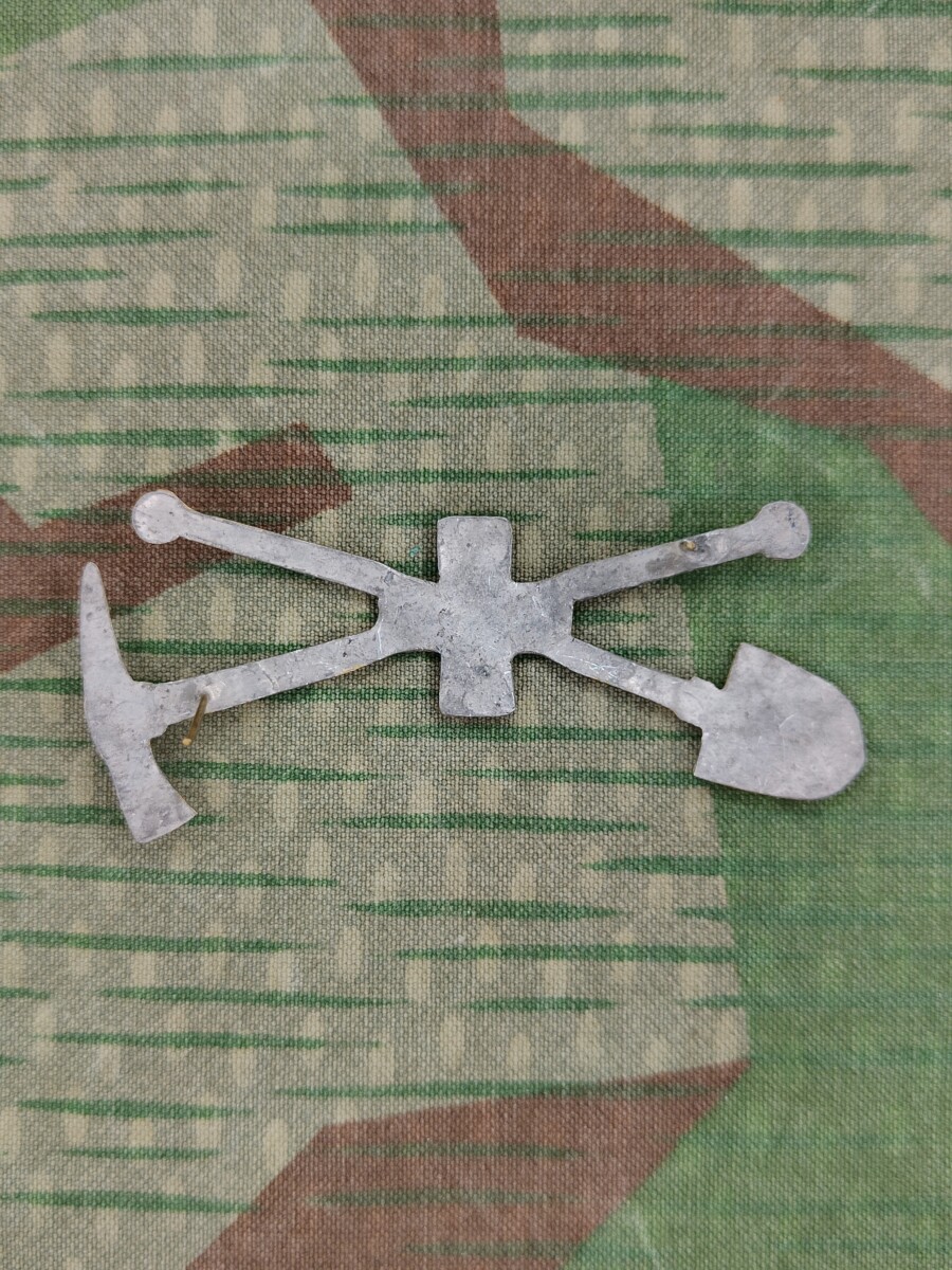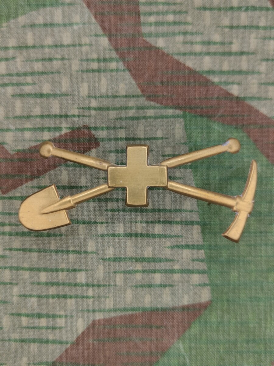Das Emblem zeigt ein gekreuzter Pickel mit Schaufel und einem Kreuz in der Mitte. Es wurde mit der Ordonnanz 1869 eingeführt.