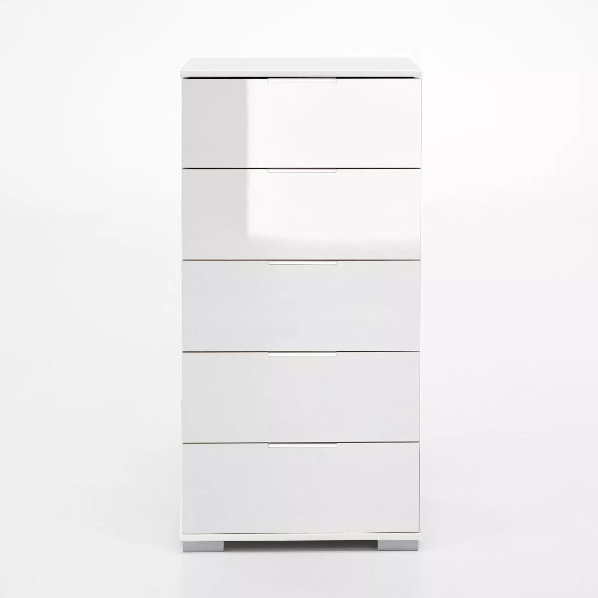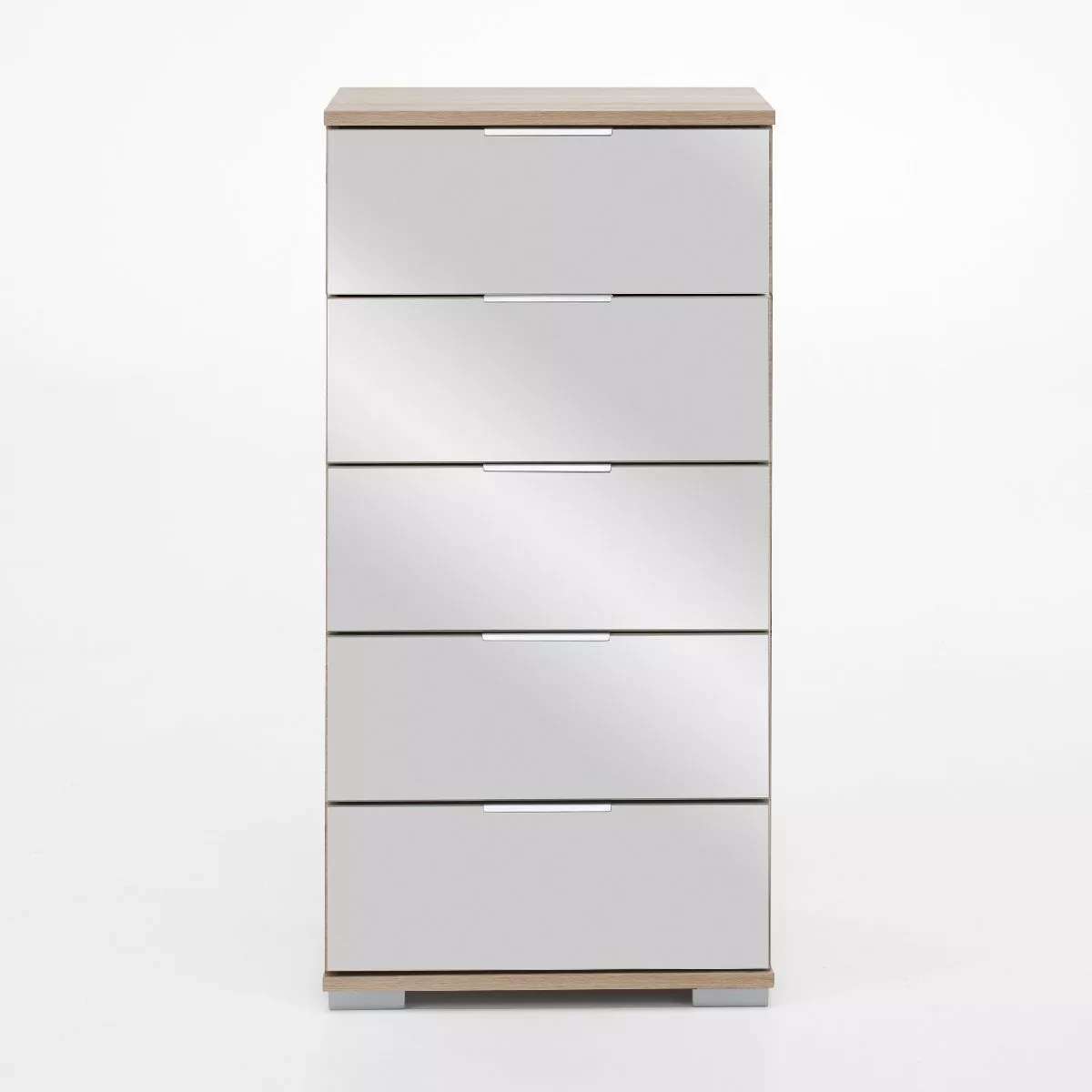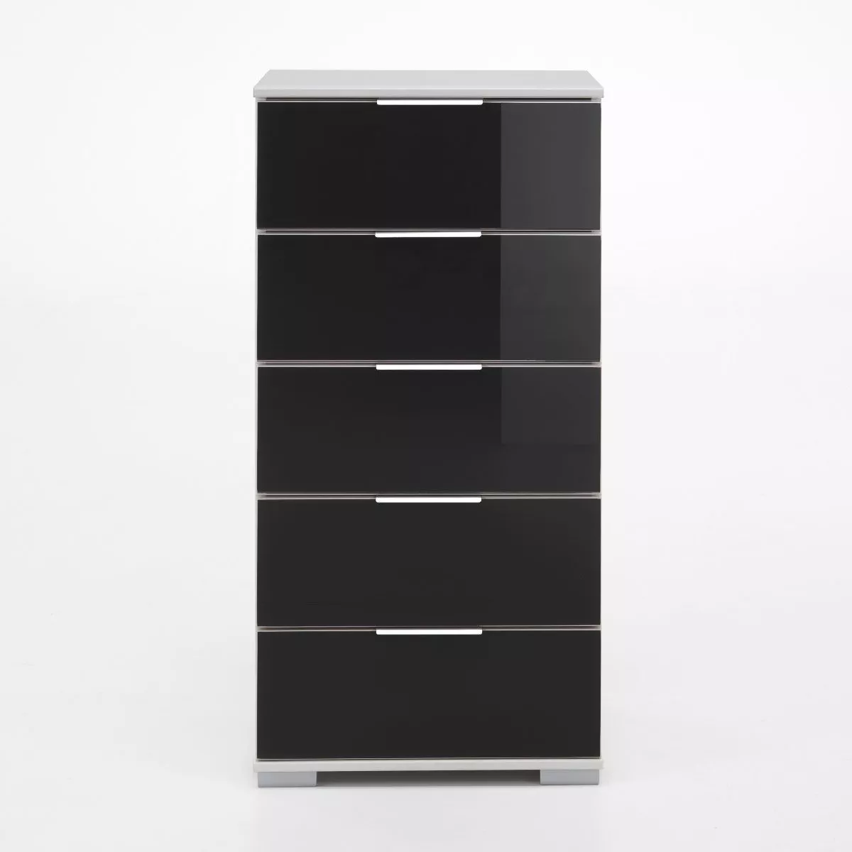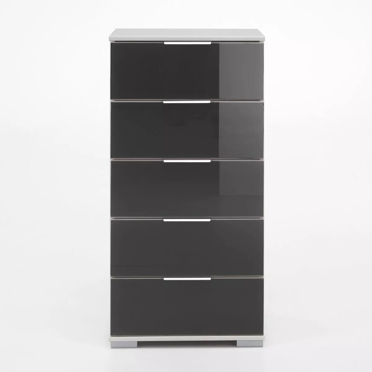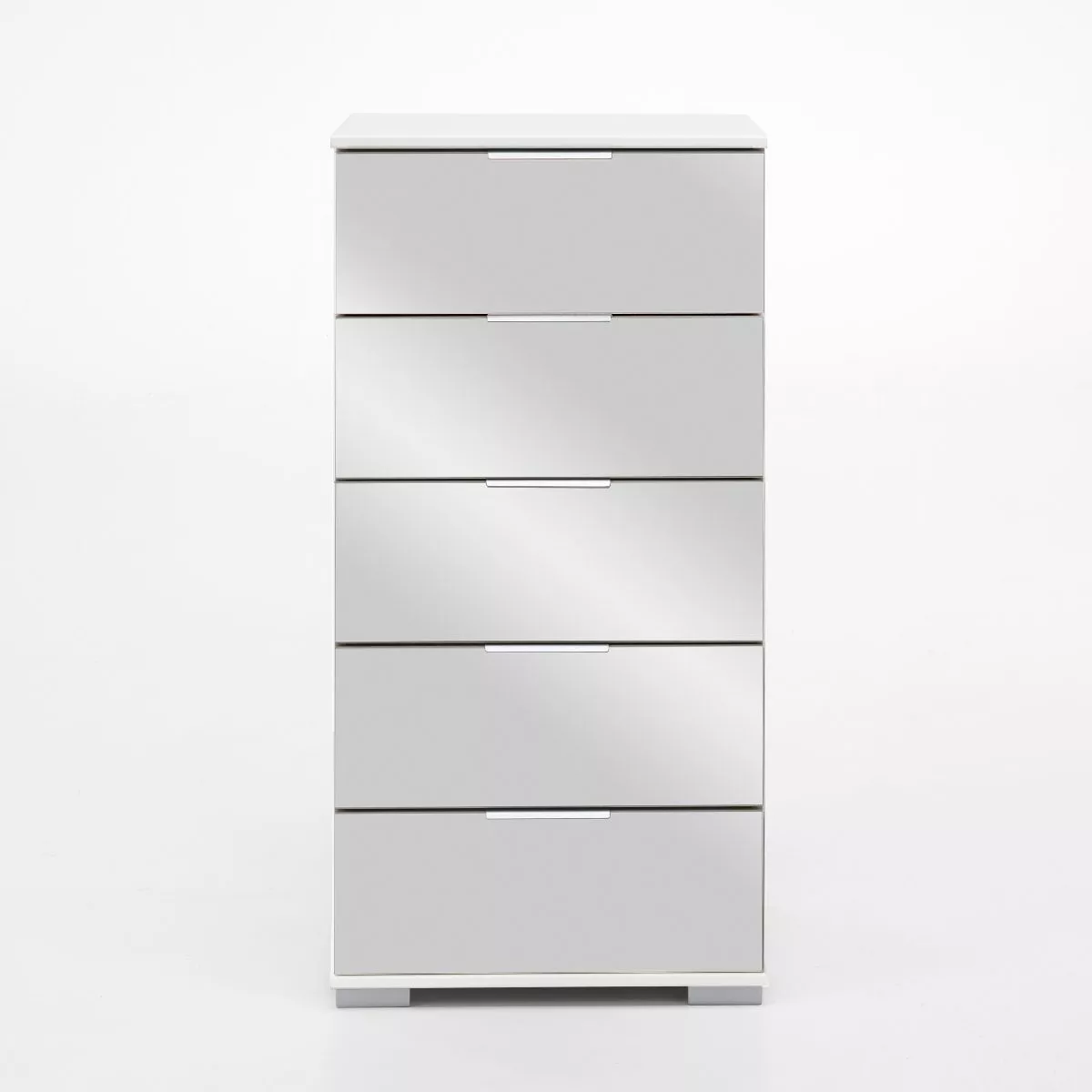 Besonders ins Auge fallen die schönen Fronten aus weißem, grauem oder schwarzem Glas oder aus Spiegelglas. Optisch darauf abgestimmt kommen die Griffe und Füße aus hellem Aluminium daher und runden das Gesamtbild der Kommode perfekt ab.