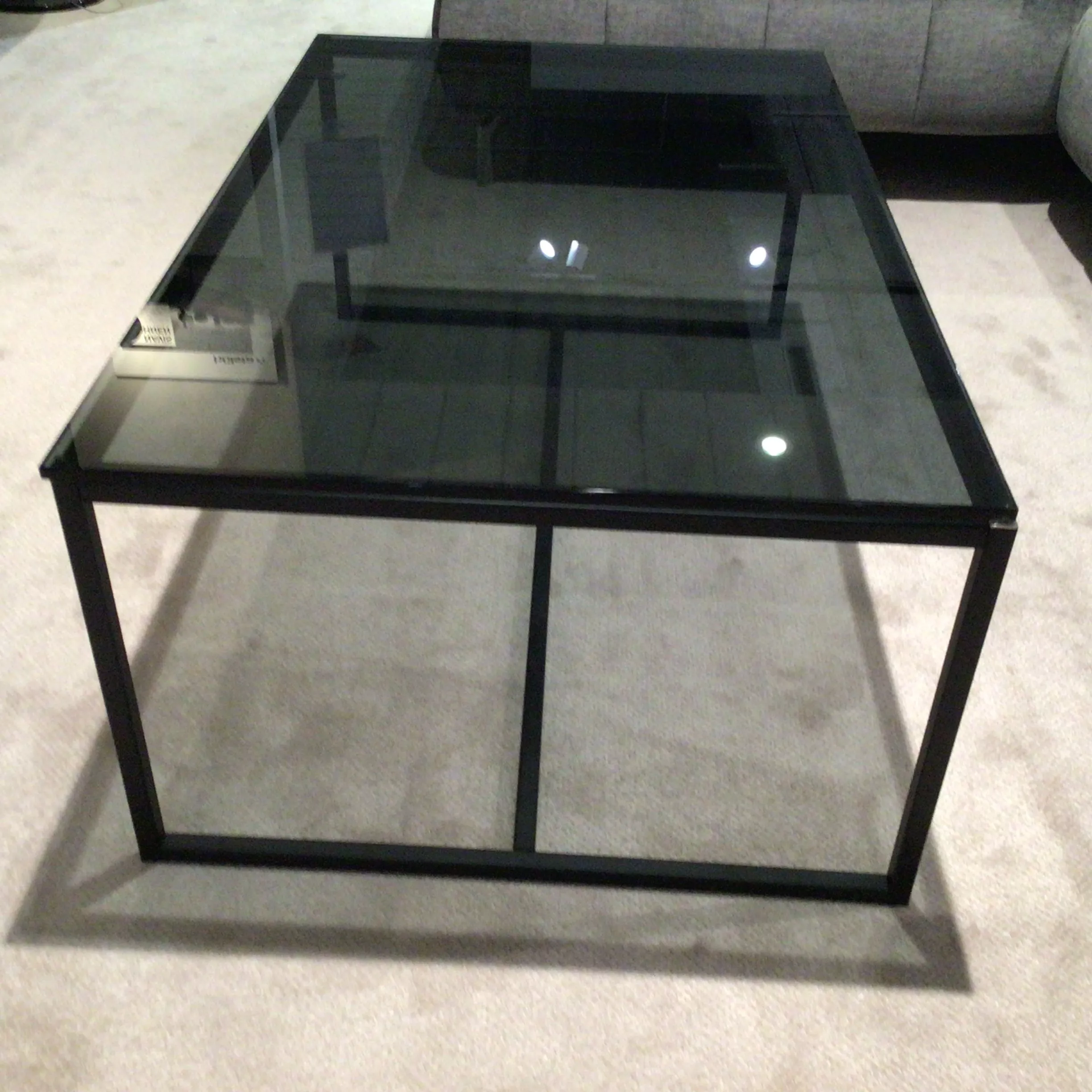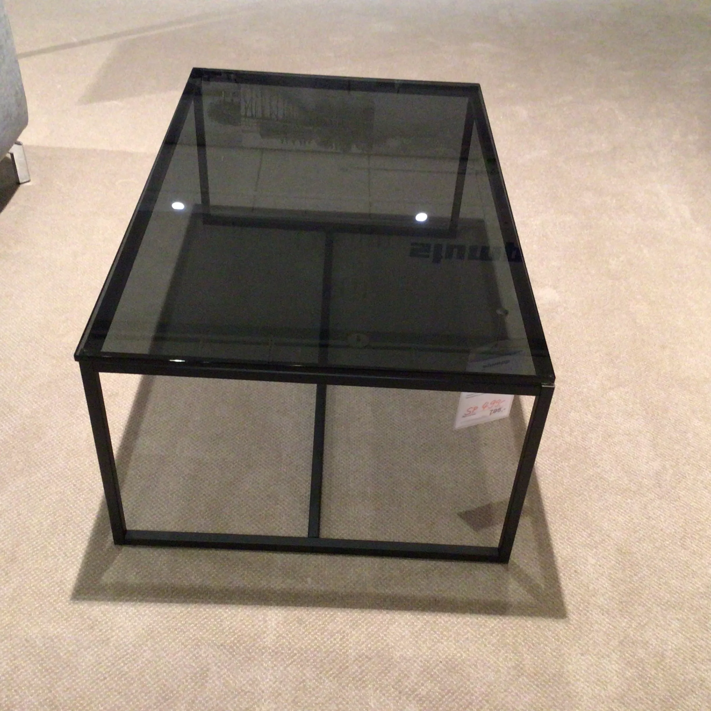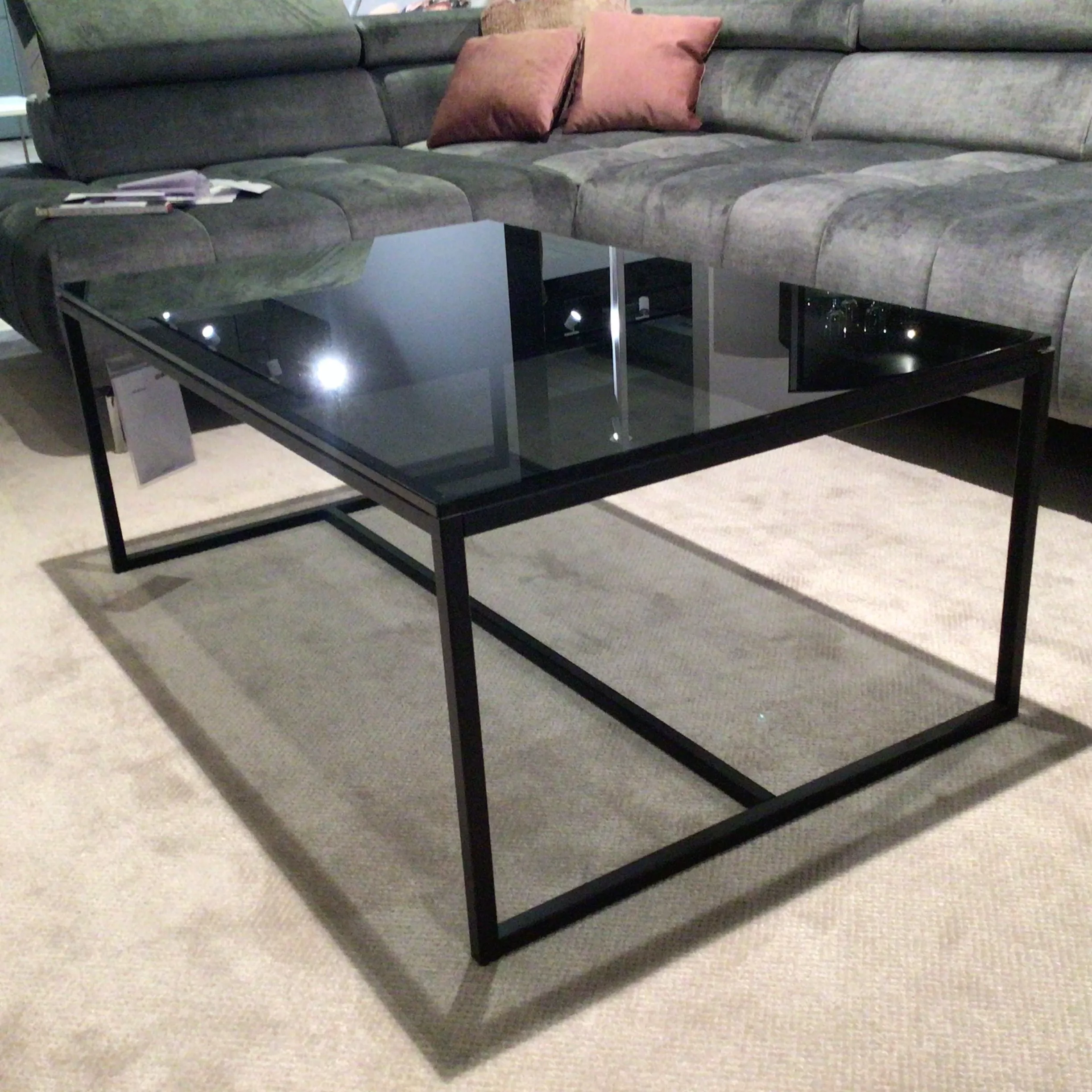 Schöner Couchtisch von WK Wohnen mit einer Tischplatte aus Parsolglas grau und einem Gestell aus Metall schwarz pulverbeschichtet.